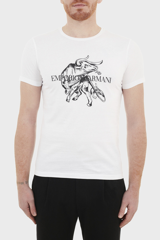 Baskılı Bisiklet Yaka % 100 Pamuk Erkek T Shirt 3K1T8P 1JL7Z 0150 BEYAZ