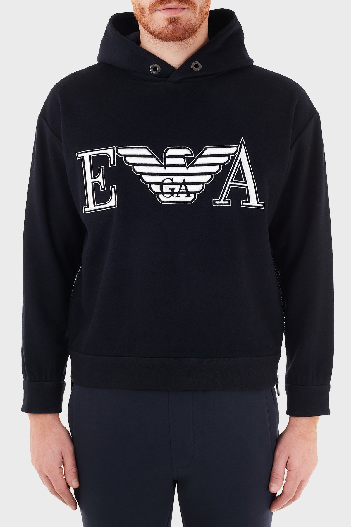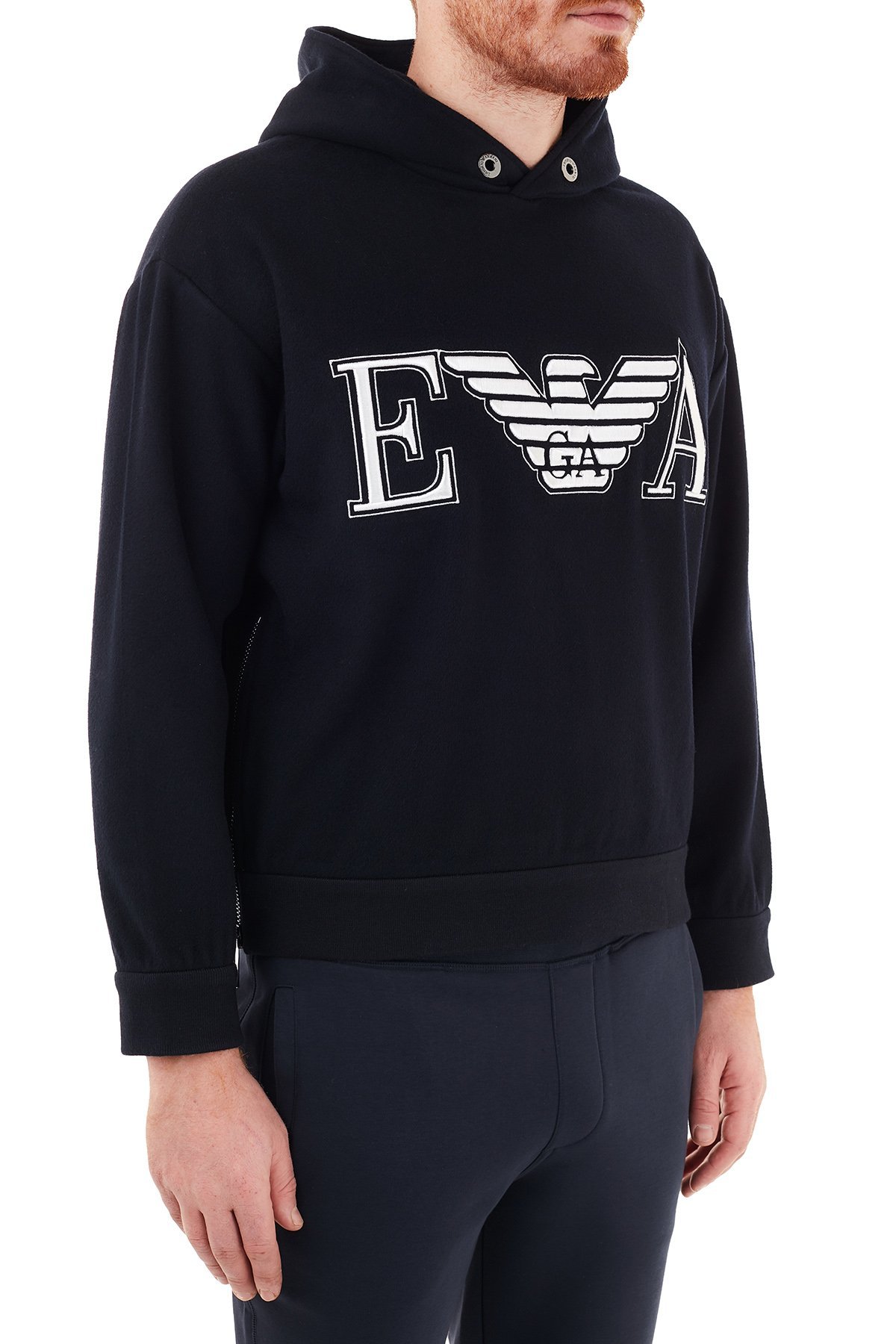 Baskılı Kapüşonlu Yünlü Erkek Sweat 6H1M81 1NXQZ 0920 LACİVERT