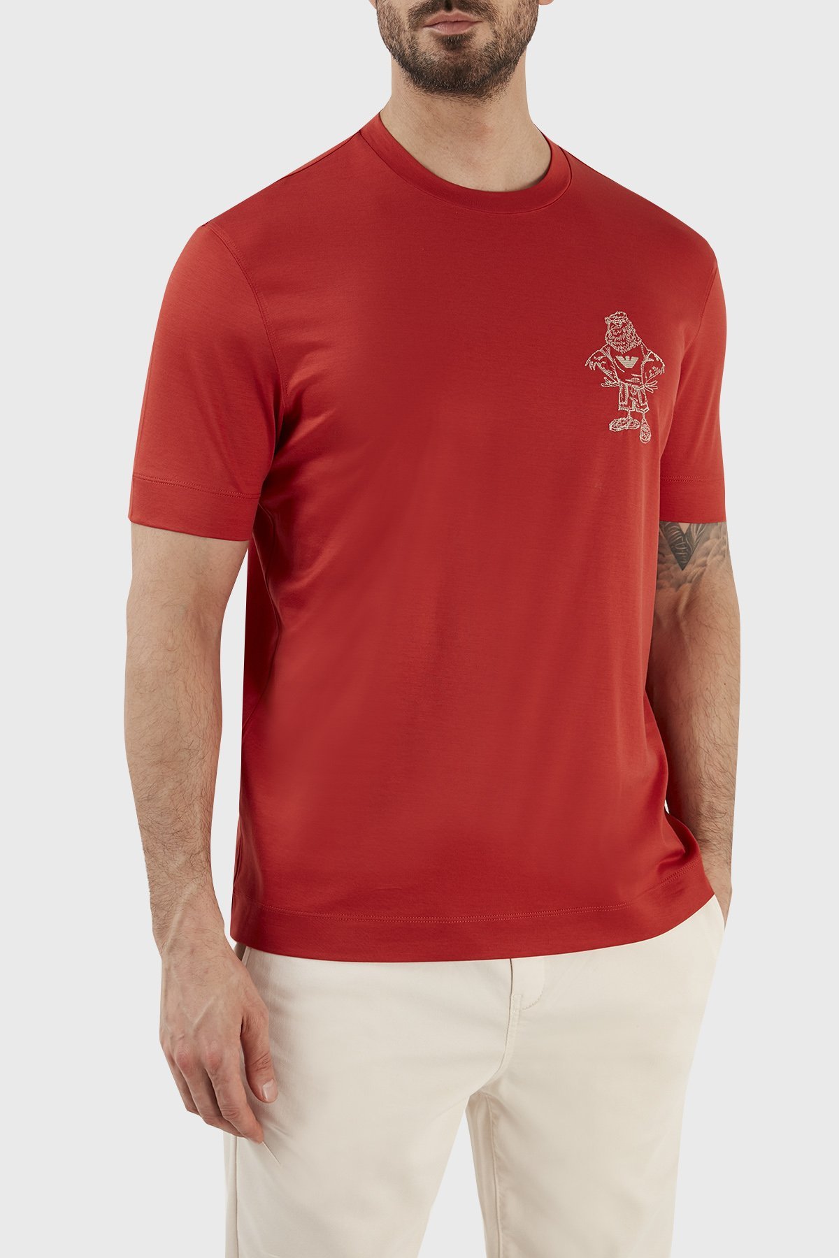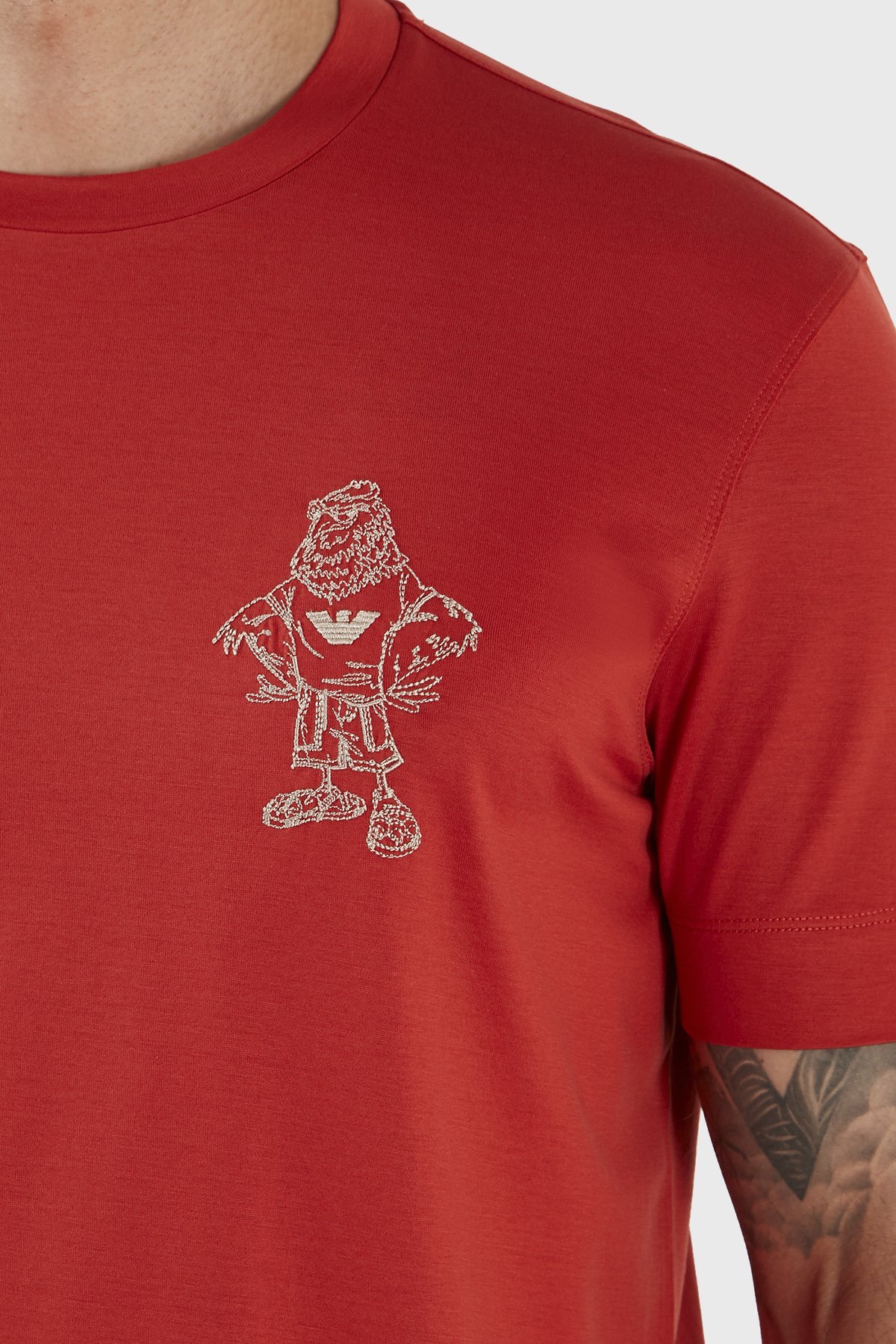 Baskılı Pamuk Karışımlı Bisiklet Yaka Regular Fit Erkek T Shirt 3R1TU2 1JUVZ 0261 KIRMIZI