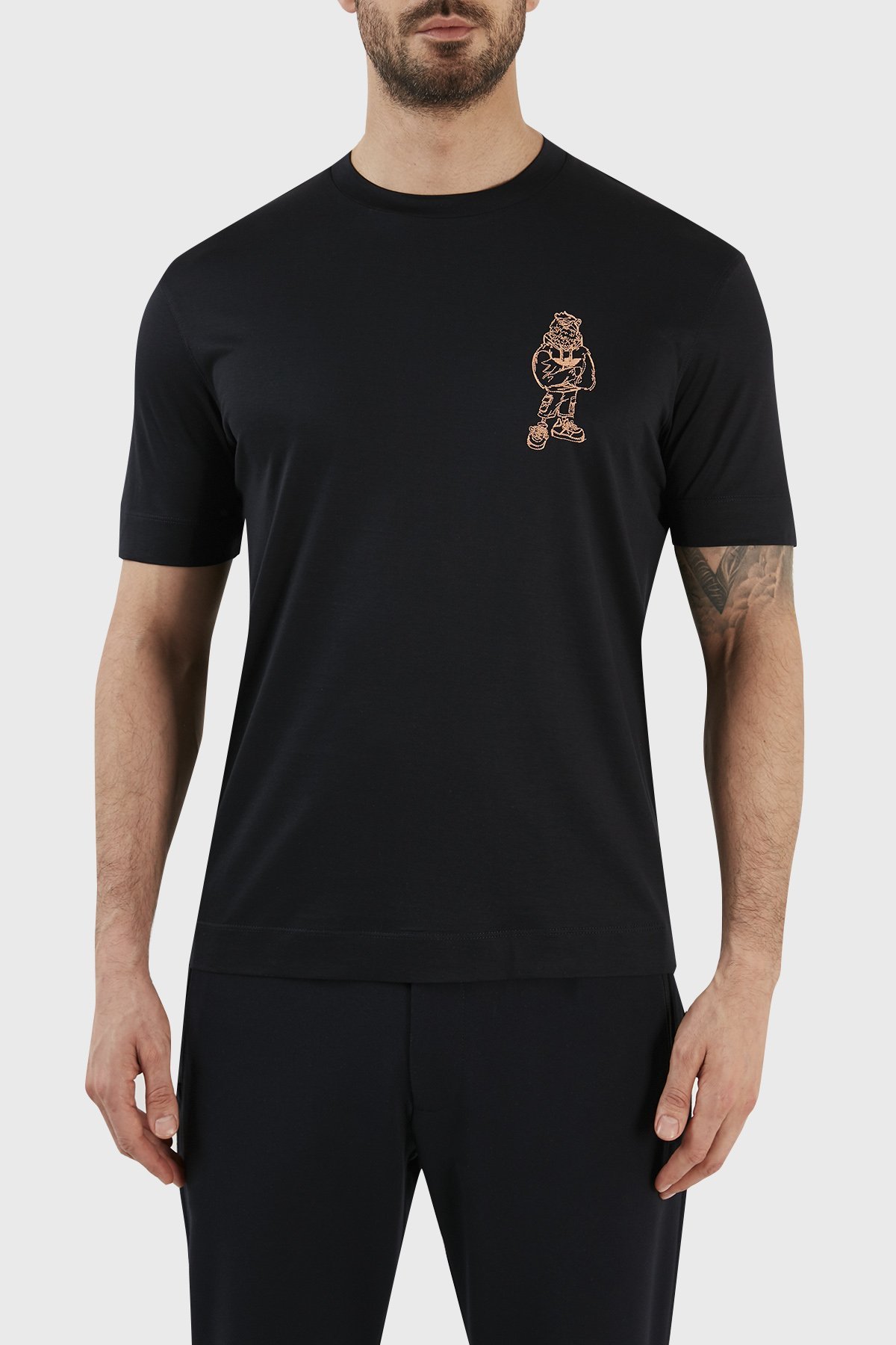 Baskılı Pamuk Karışımlı Bisiklet Yaka Regular Fit Erkek T Shirt 3R1TU2 1JUVZ 0920 LACİVERT