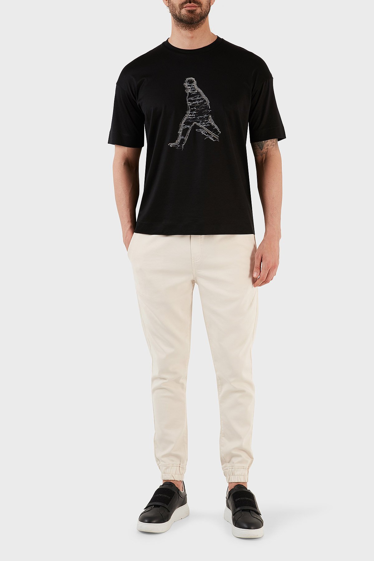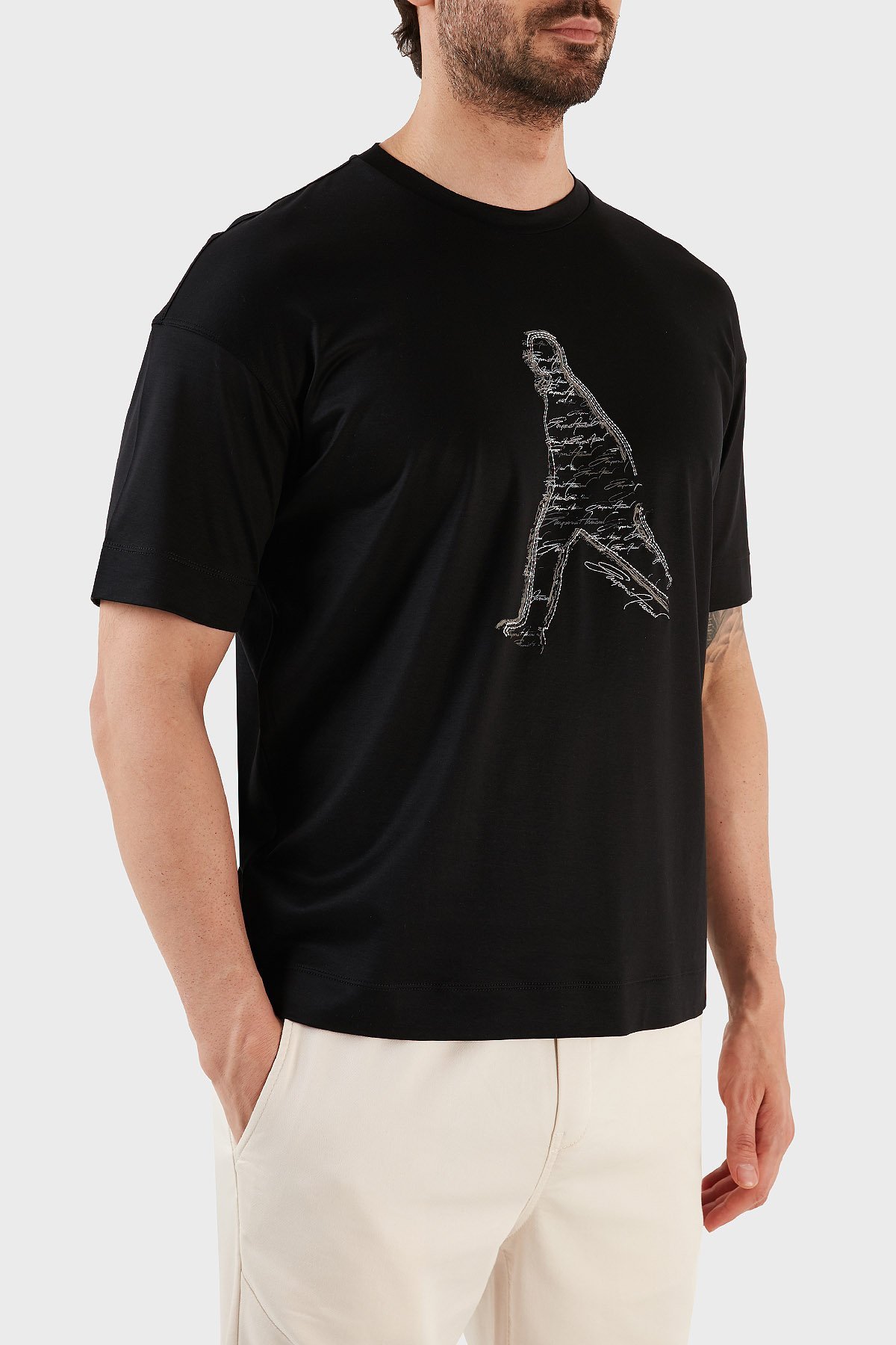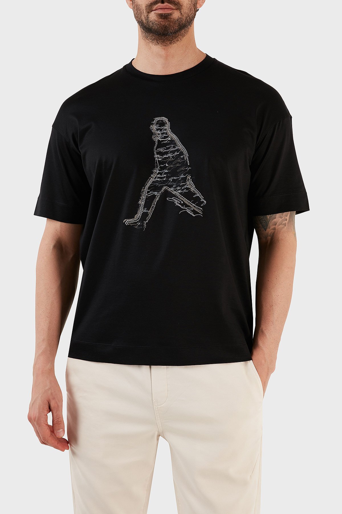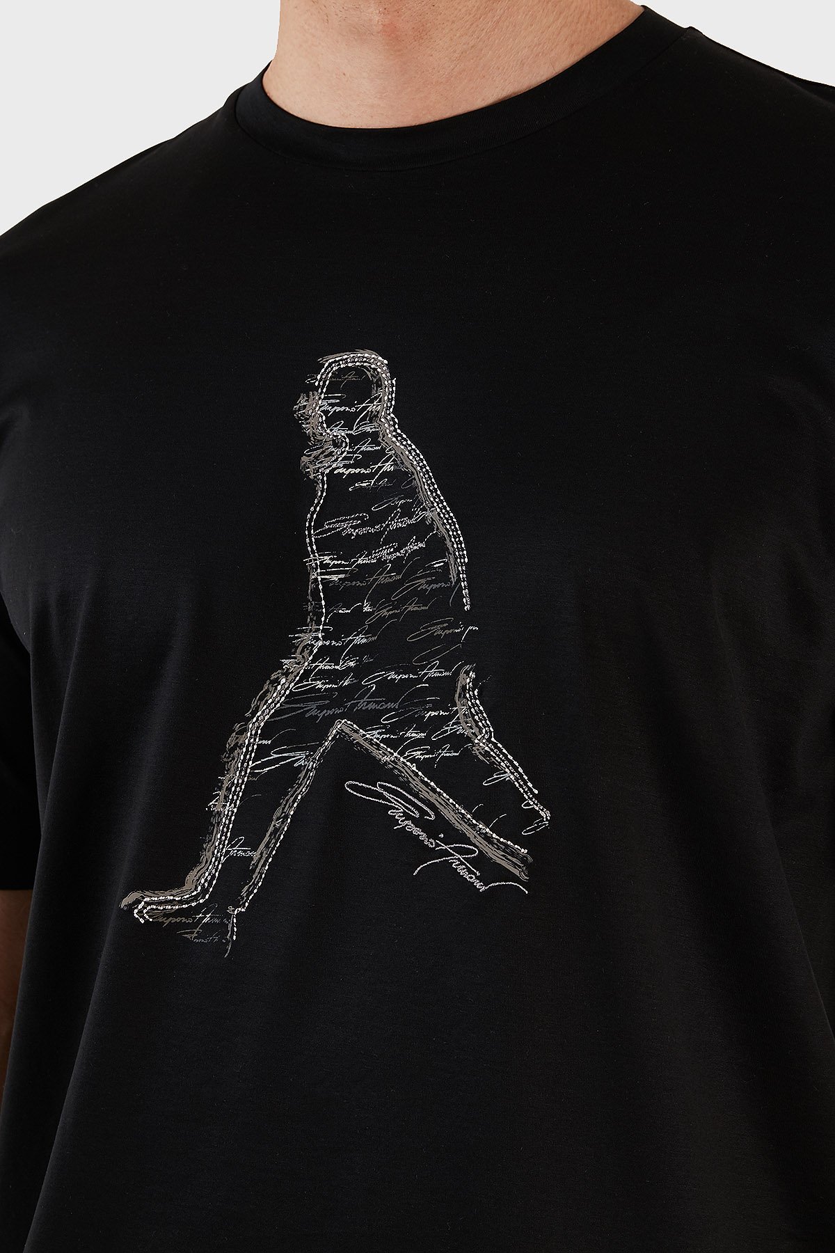 Baskılı Pamuklu Regular Fit Bisiklet Yaka Erkek T Shirt 3R1TT9 1JUVZ 0999 SİYAH