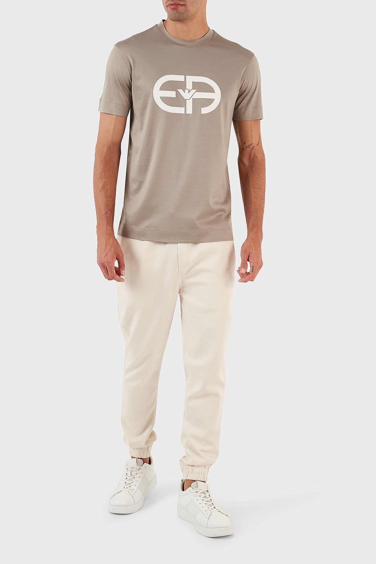 Baskılı Slim Fit Bisiklet Yaka Erkek T Shirt 8N1TF6 1JUVZ 0643 BEJ