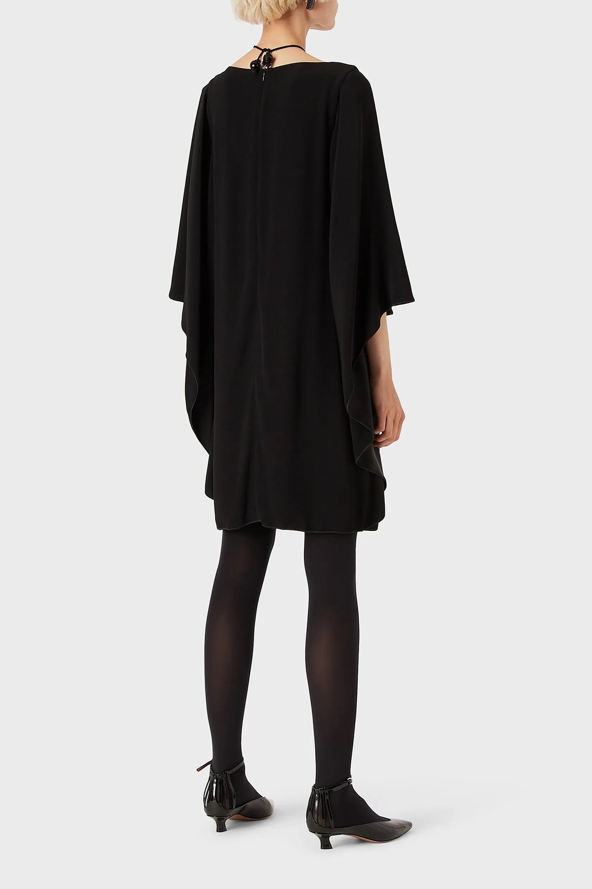 Geniş Yaka Pelerin Kollu Mini Bayan Elbise 6K2A78 2N8XZ 0999 SİYAH
