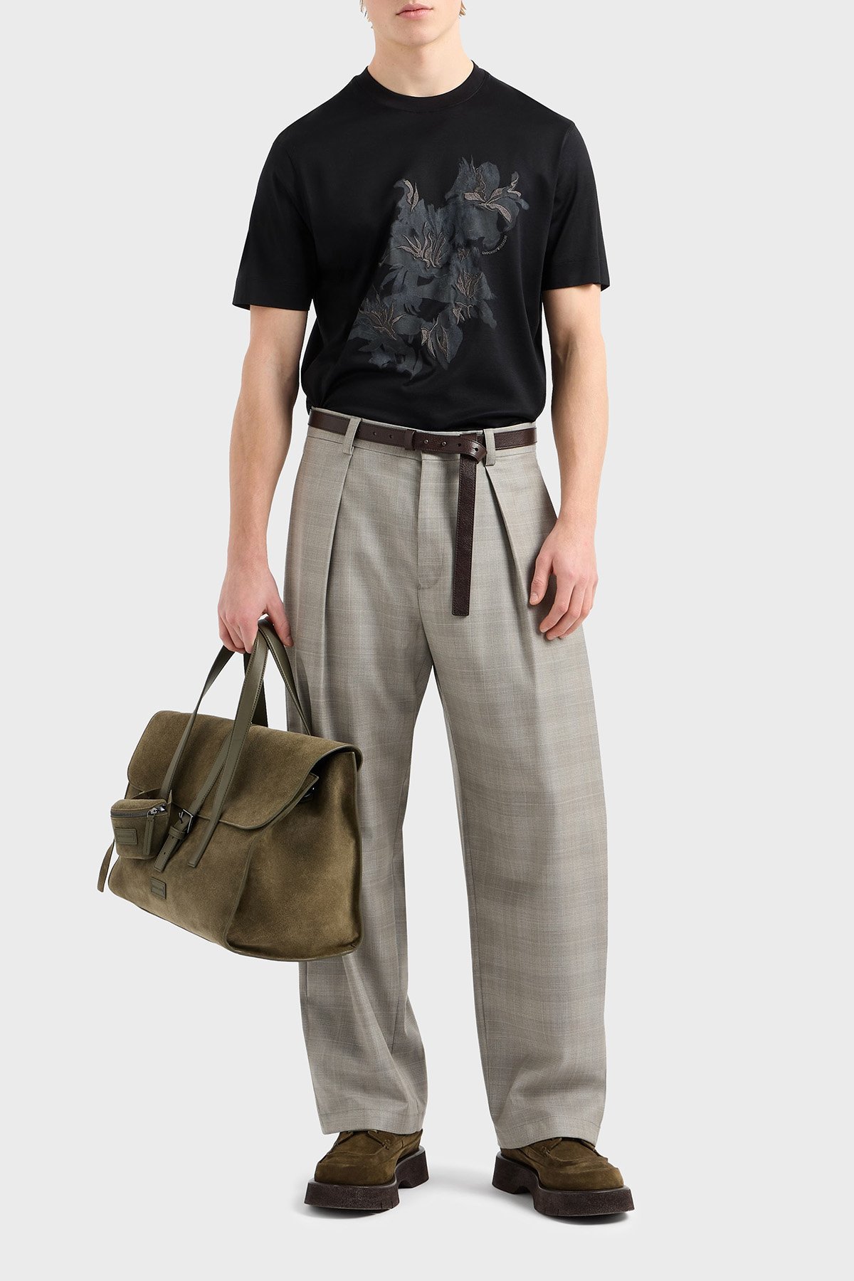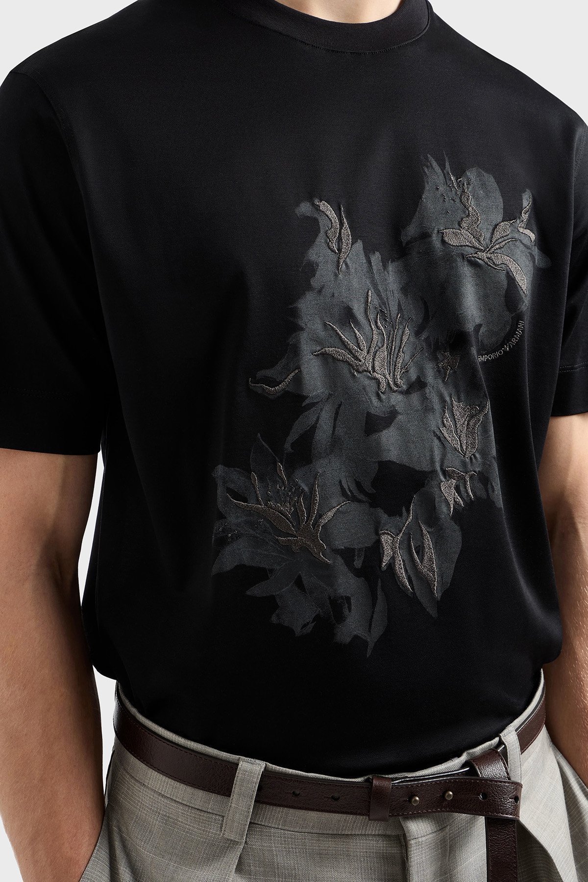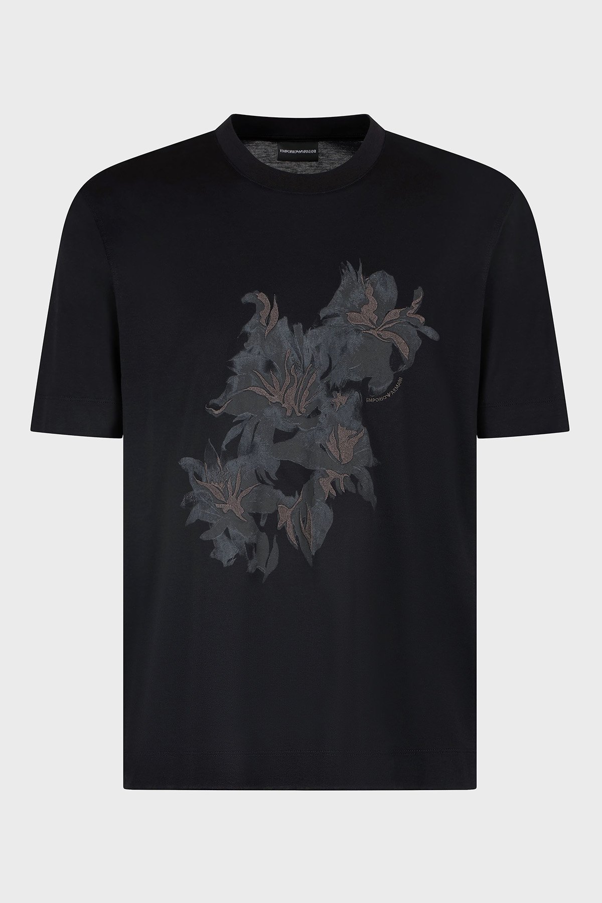 Çiçek Baskılı Pamuklu Regular Fit Bisiklet Yaka Erkek T Shirt EM001024 AF10017 UC001 SİYAH