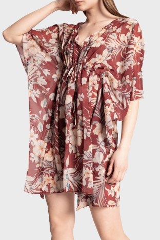 Çiçekli V Yaka Mini Bayan Elbise 262663 1P316 03956 BORDO