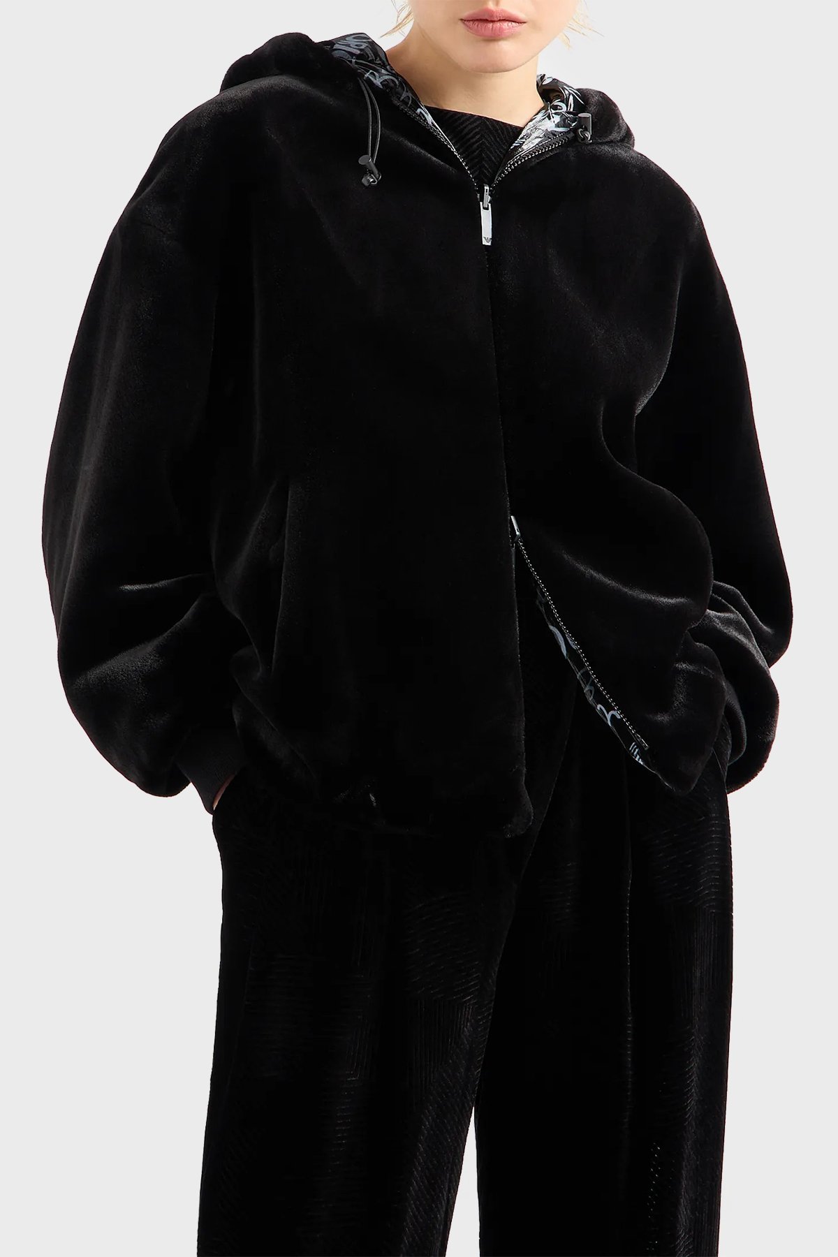 Çift Taraflı Kapüşonlu Relaxed Fit Bomber Bayan Ceket H4NB1D E9917 099 SİYAH