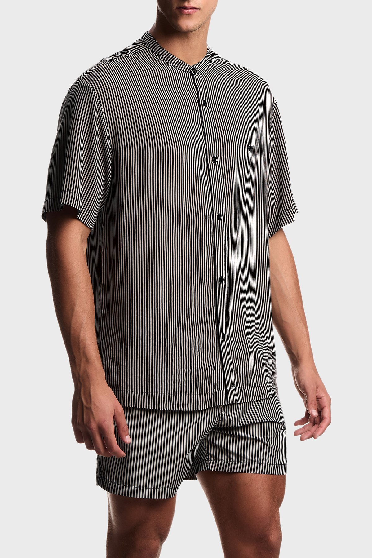 Çizgili Regular Fit Kısa Kollu Erkek Gömlek EM005144 AF20445 F1039 SİYAH-BEJ