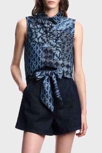 Desenli % 100 Pamuk Regular Fit Kot Bayan Gömlek EW000755 AF12438 FB057 LACİVERT