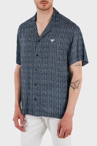 Desenli Comfort Fit Apaş Yaka Kısa Kollu Erkek Gömlek EM000593 AF12351 FB183 MAVİ-BEYAZ