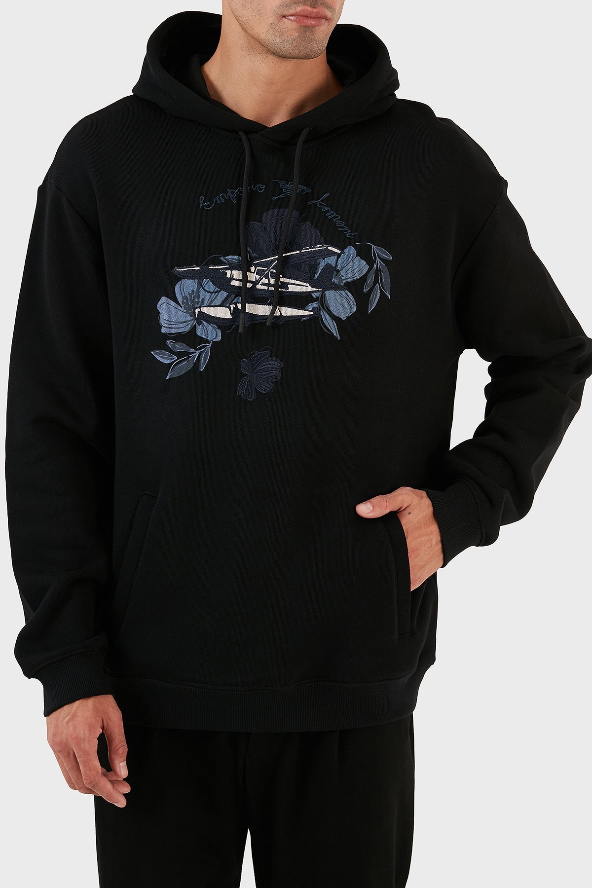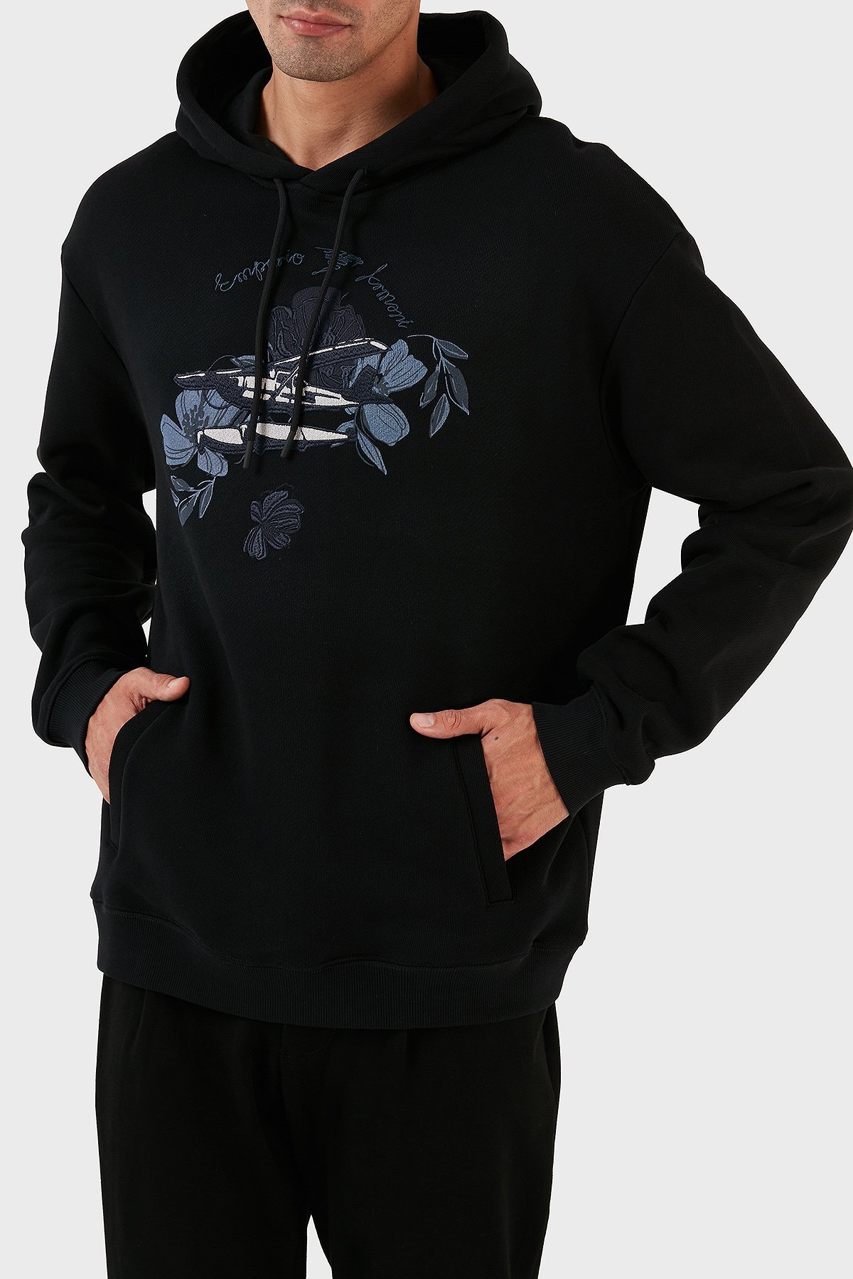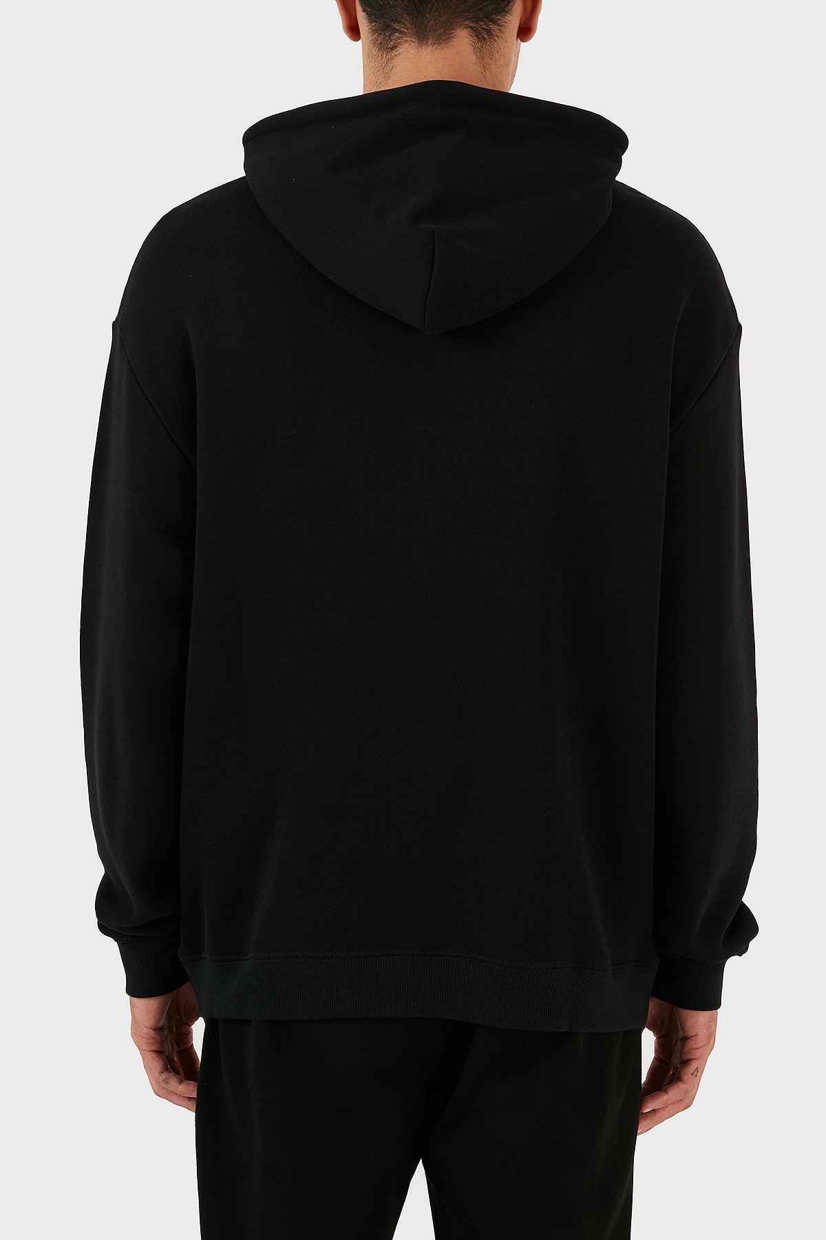 Desenli Kanguru Cepli % 100 Pamuk Kapüşonlu Relaxed Fit Erkek Sweat 6R1M8P 1J7DZ 0041 SİYAH