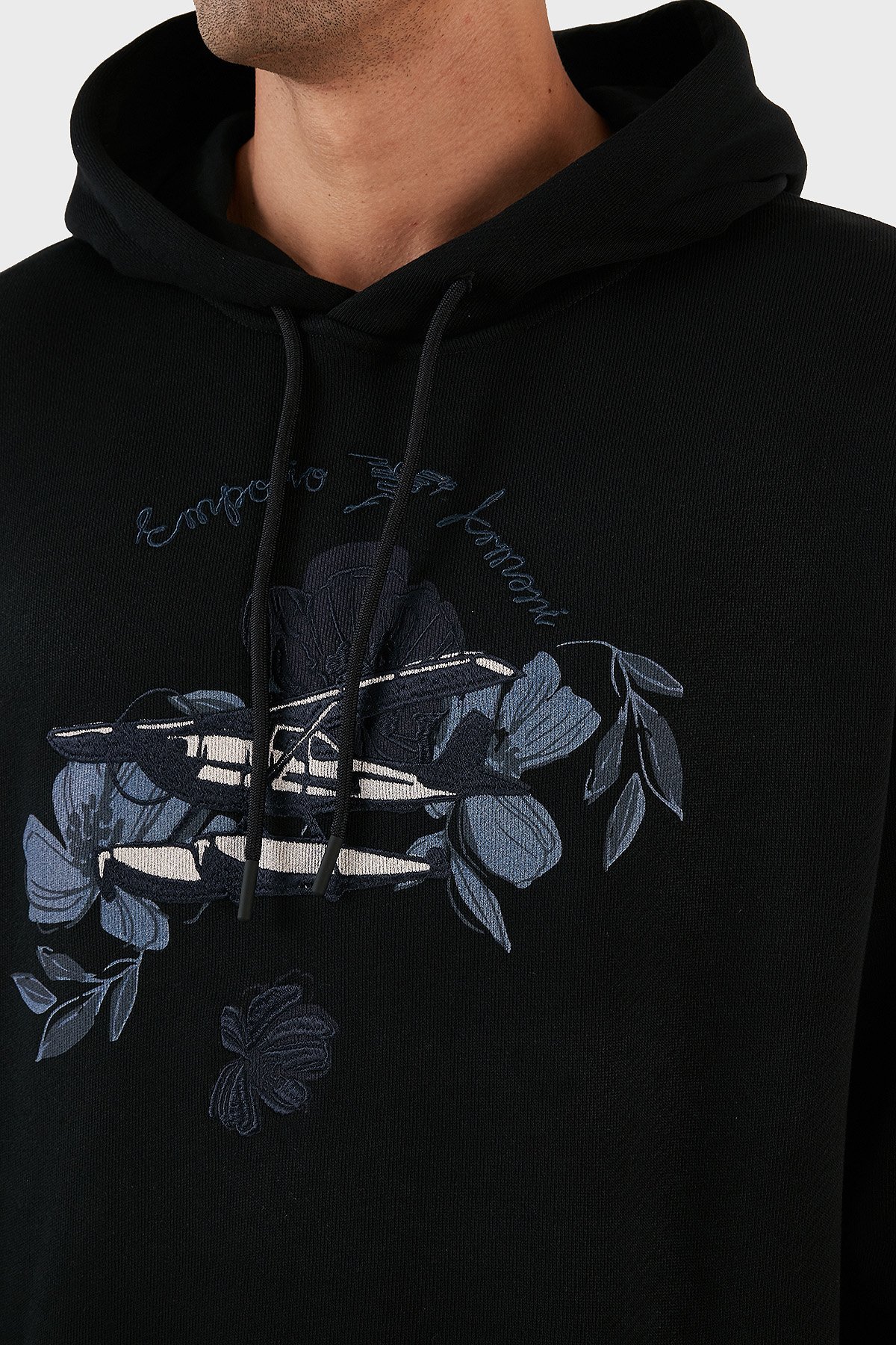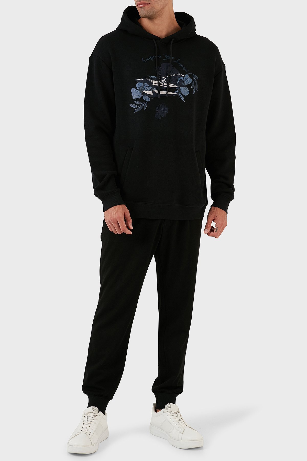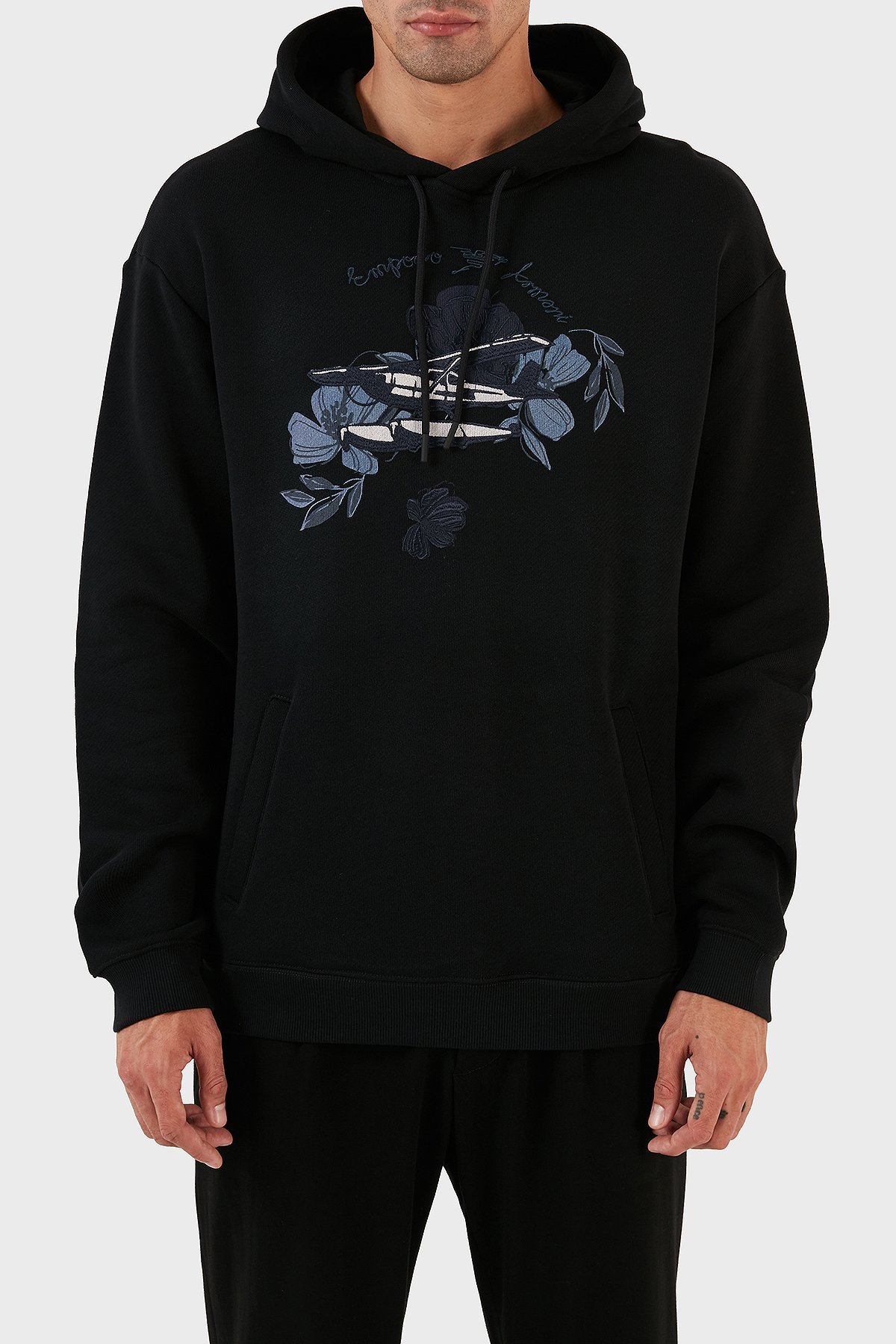 Desenli Kanguru Cepli % 100 Pamuk Kapüşonlu Relaxed Fit Erkek Sweat 6R1M8P 1J7DZ 0041 SİYAH