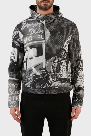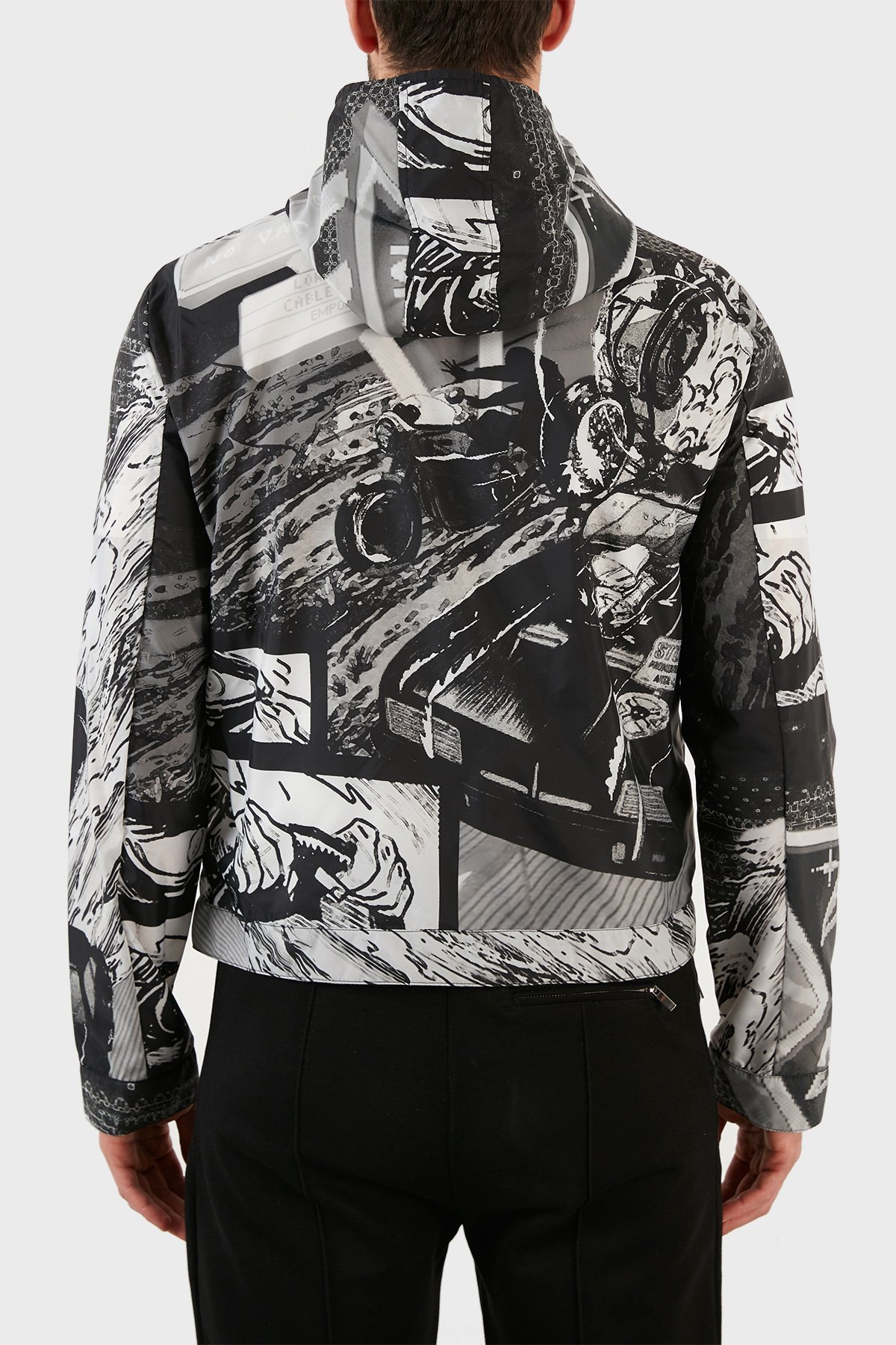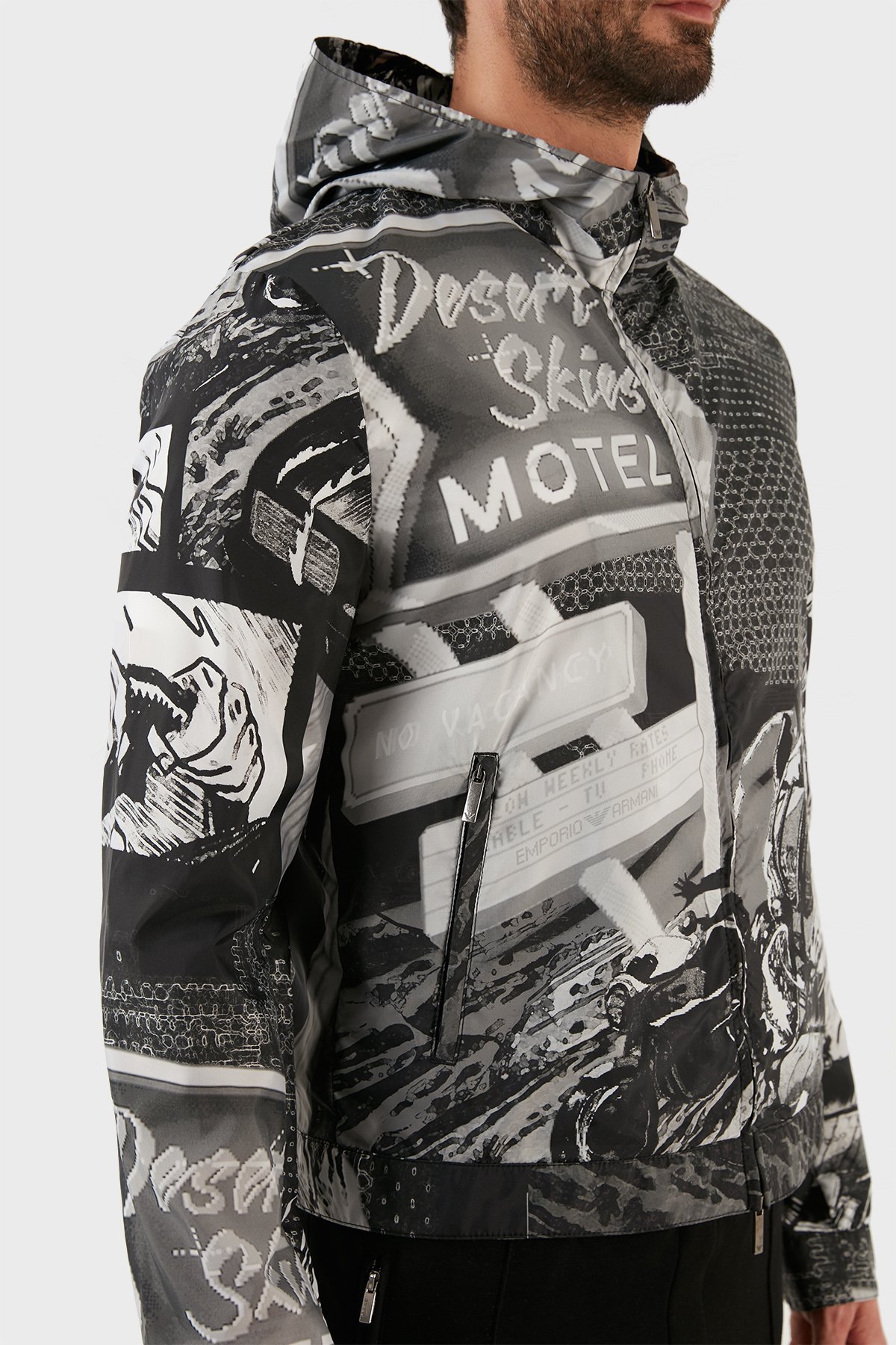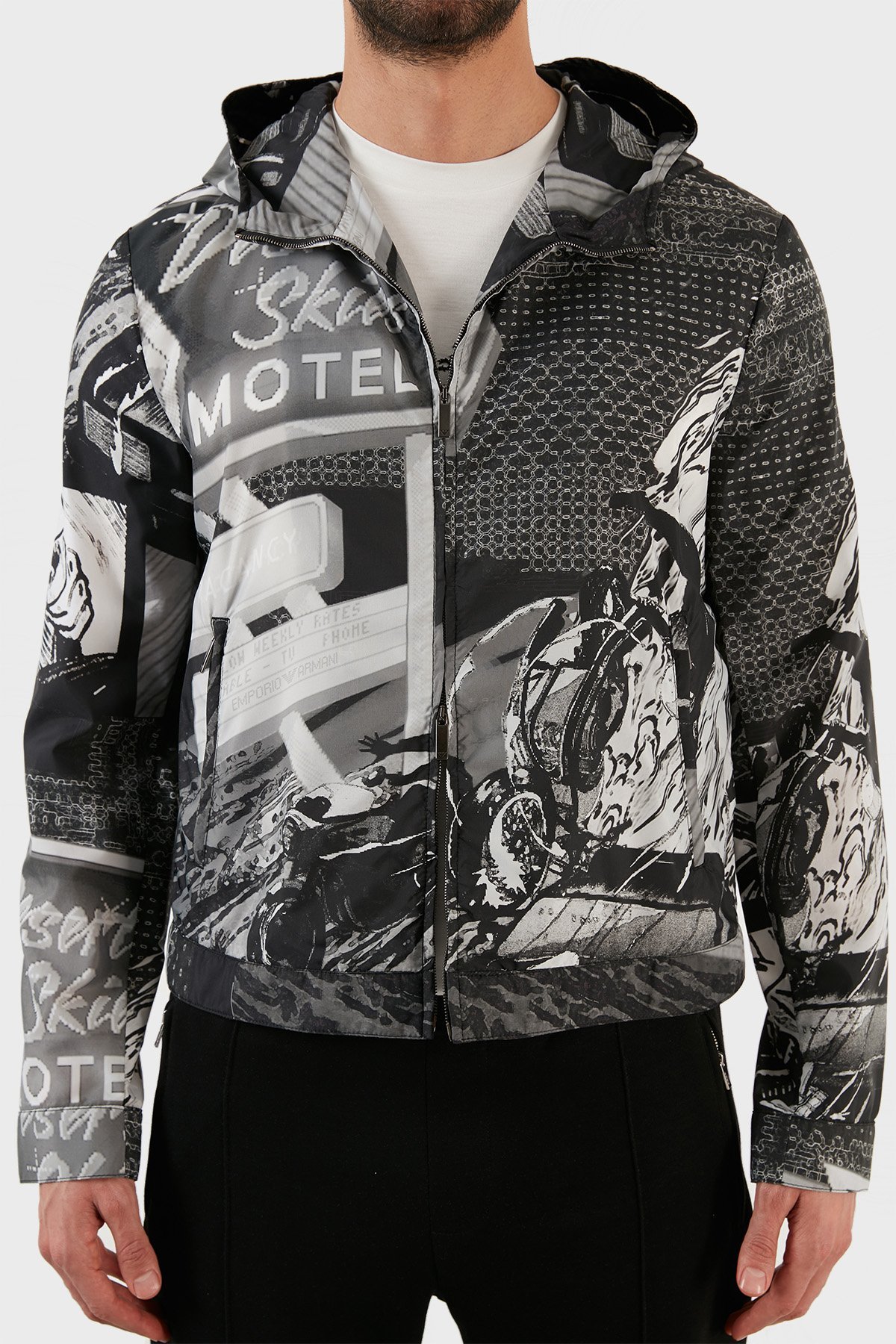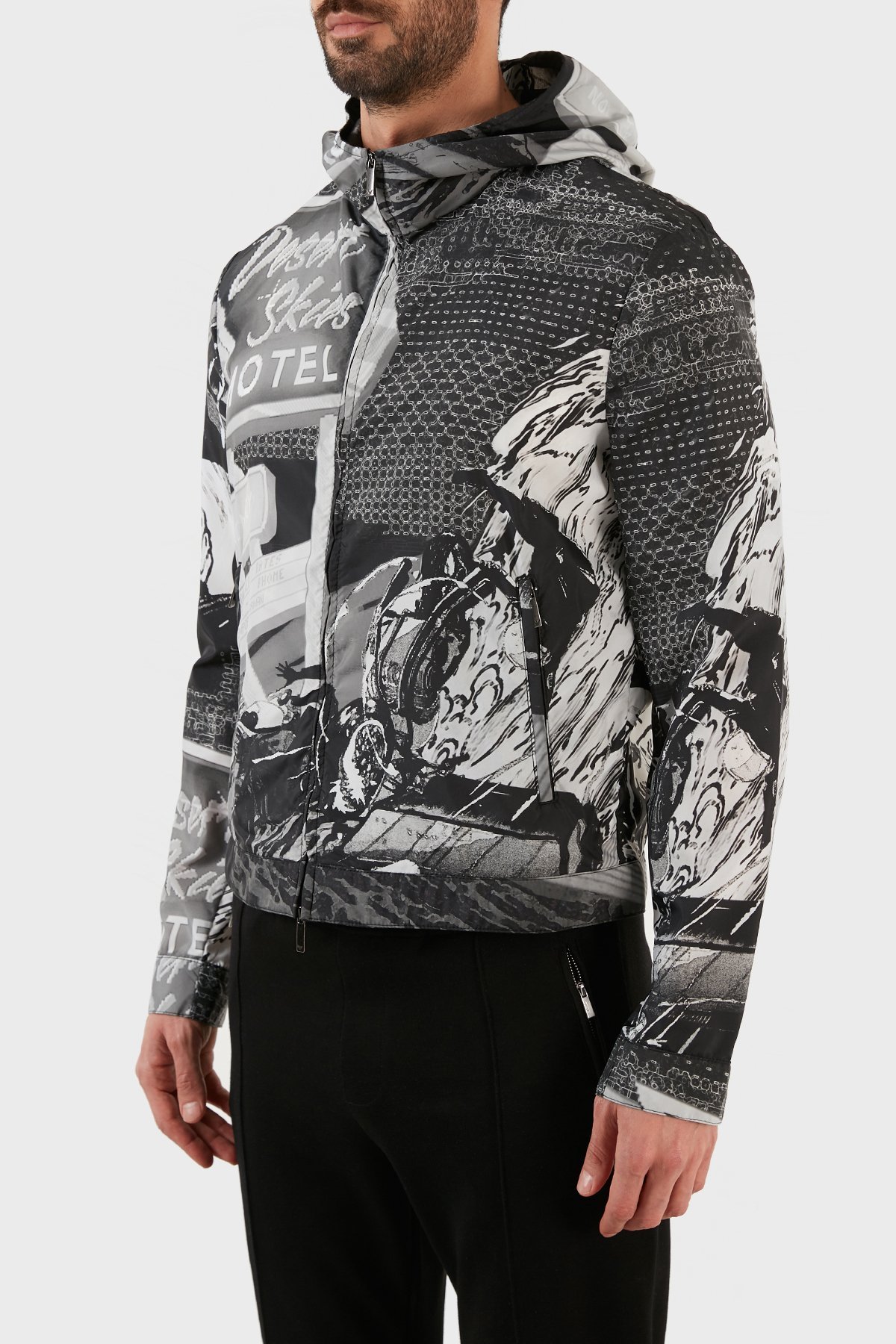 Desenli Suya Dayanıklı Kapüşonlu Erkek Mont I1R410 I1018 991 GRİ