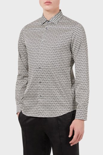 Logo Baskılı Slim Fit Pamuklu Erkek Gömlek 6K1C65 1NZJZ F122 BEYAZ-SİYAH