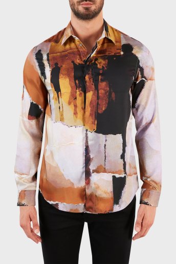 Baskılı Düz Yaka % 100 Pamuk Erkek Gömlek B1SM0B B136C 036 KAHVE-TABA