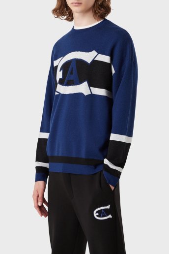 Logo Baskılı Bisiklet Yaka % 100 Yün Erkek Kazak 6K1MXA 1MSRZ 0938 SAKS