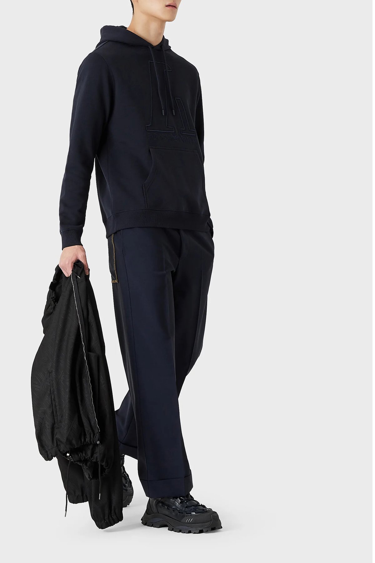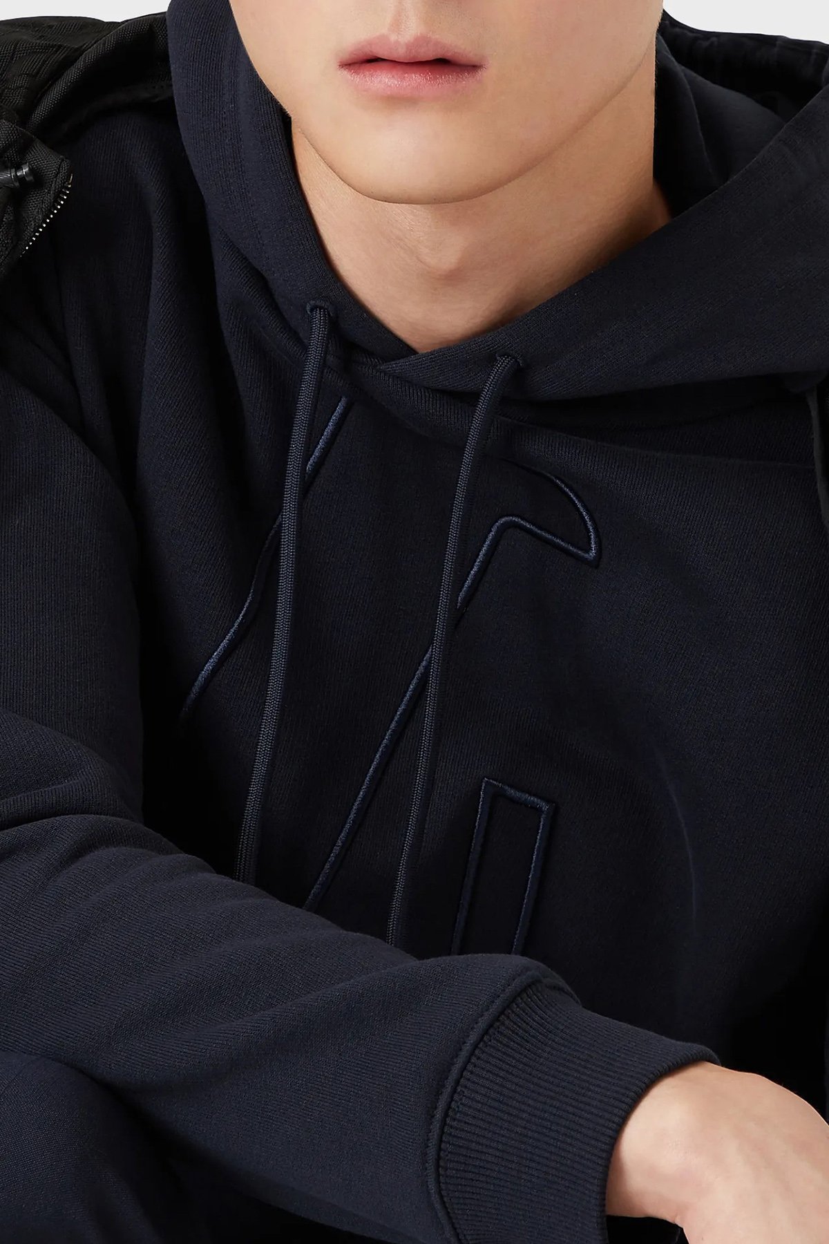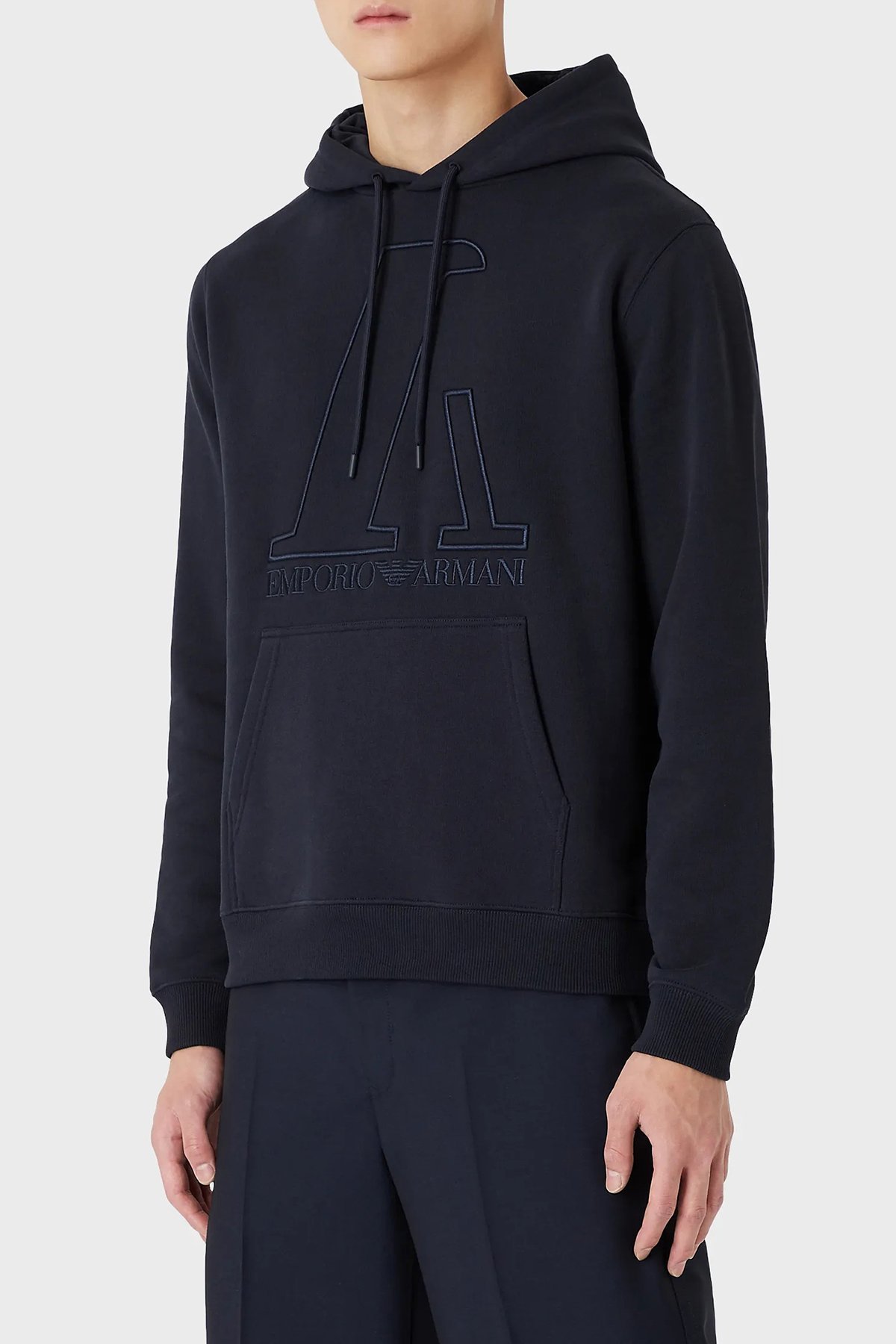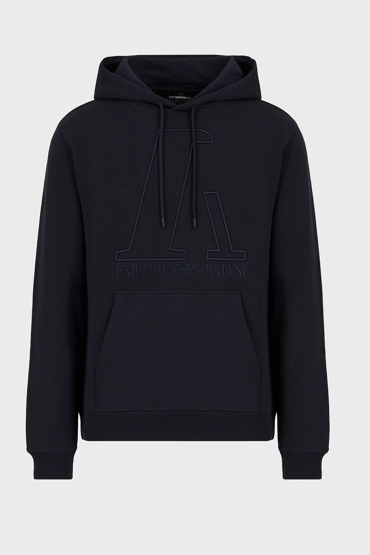 Baskılı Kapüşonlu Kanguru Cepli % 100 Pamuk Erkek Sweat 6K1M6T 1JT2Z 0922 LACİVERT