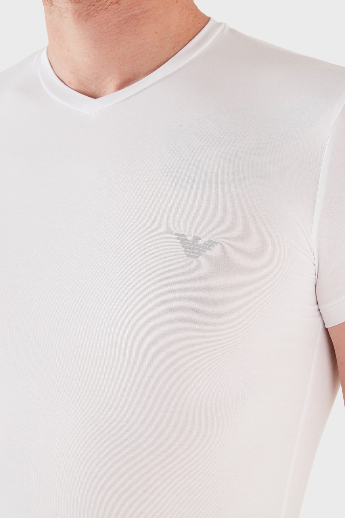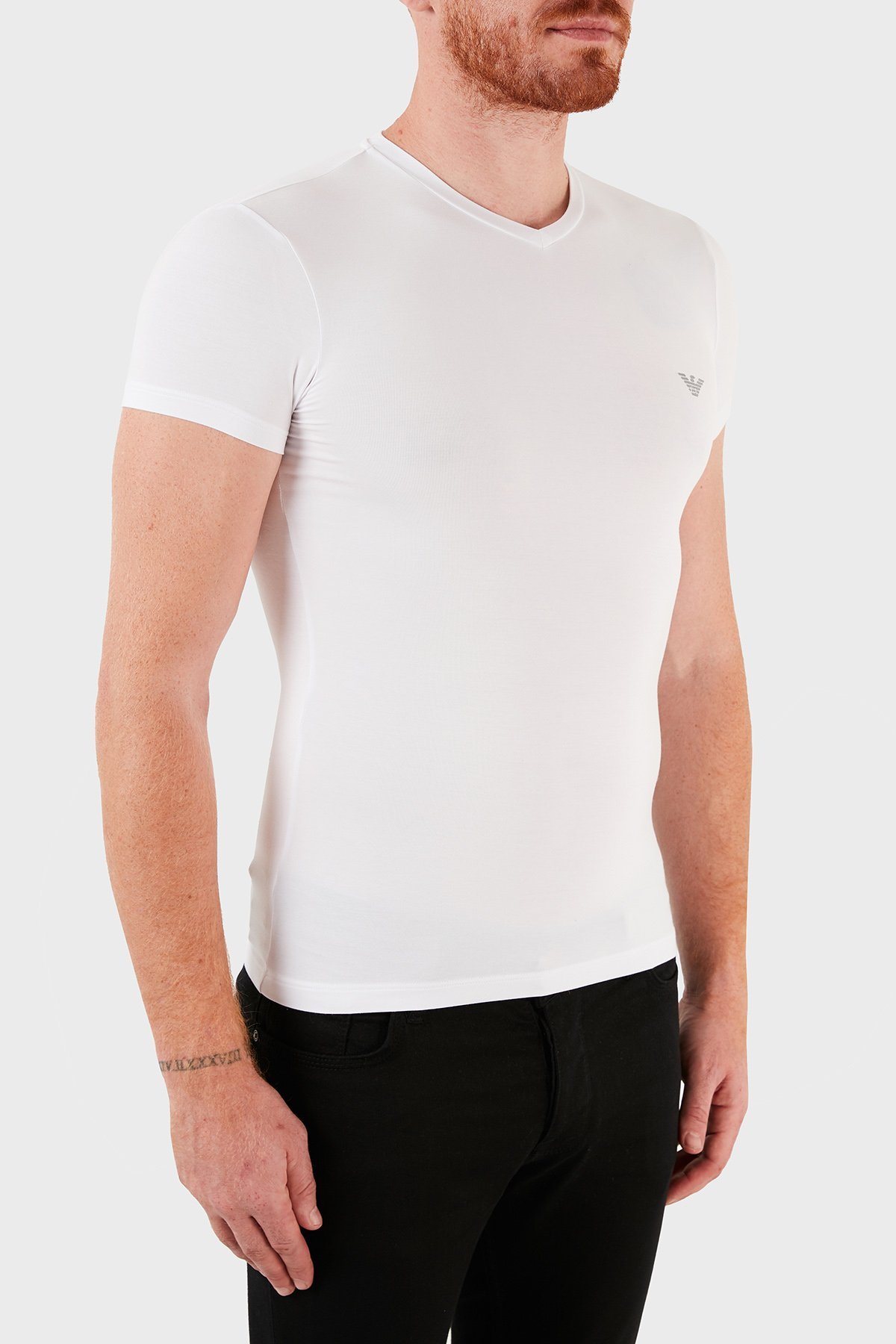 Slim Fit Marka Logolu V Yaka Erkek T Shirt 111342 1A511 00010 BEYAZ