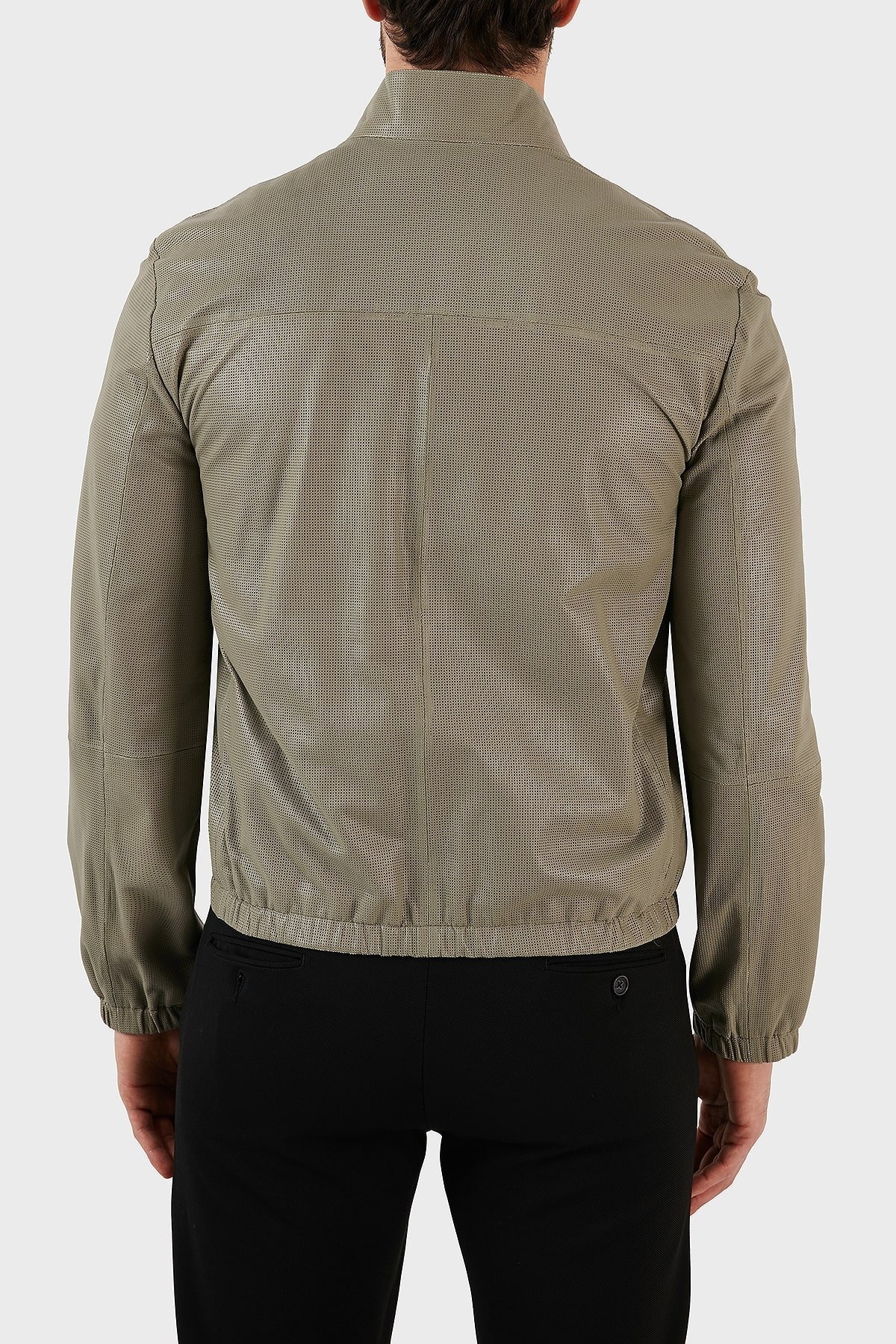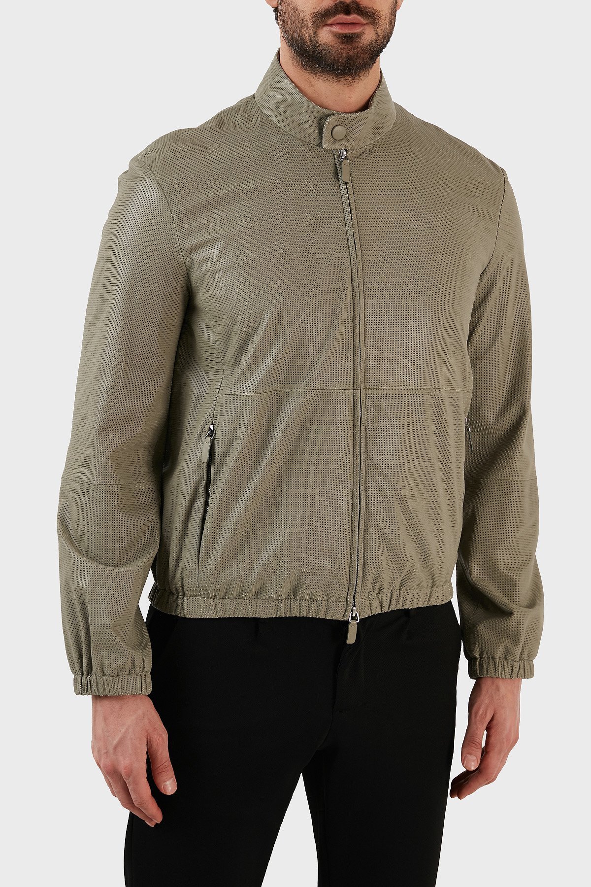 Fermuarlı Dik Yaka Hakiki Deri Spor Erkek Ceket D41R86 D1P86 618 AÇIK YEŞİL
