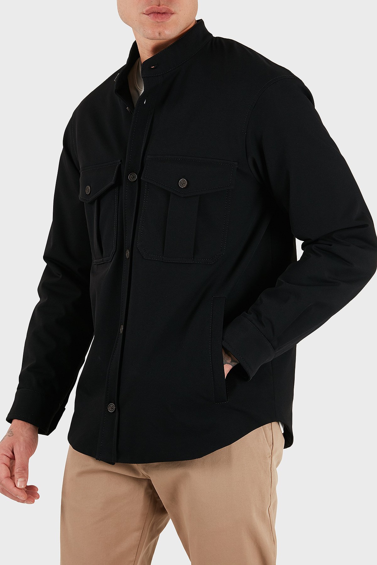 Göğüs Cep Detaylı Comfort Fit Dik Yaka Düğmeli Erkek Ceket EM003695 AF18502 UC001 SİYAH