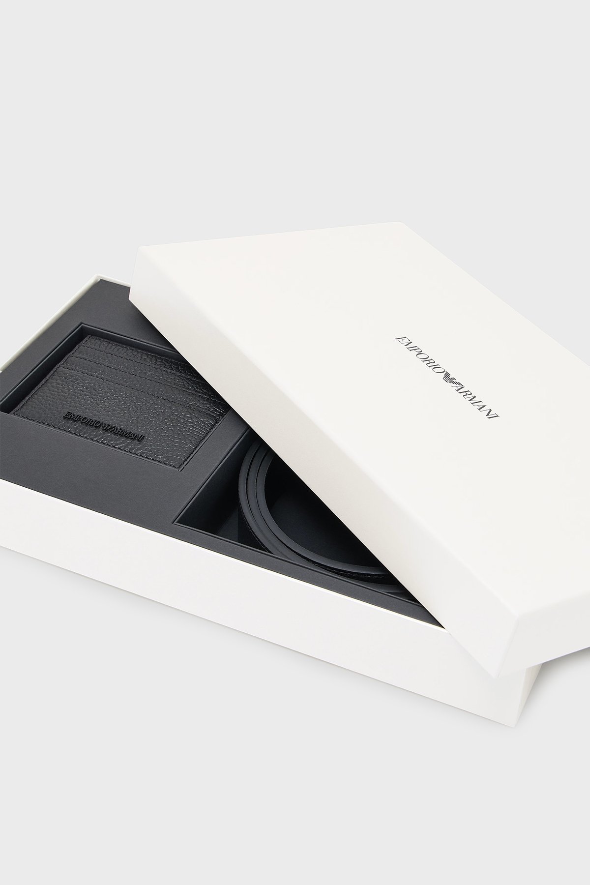 Hakiki Deri Logolu Erkek Kartlık Kemer Set EM002772 AF13396 UC001 SİYAH
