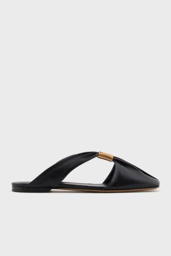 Hakiki Deri Metalik Logo Detaylı Bayan Terlik X3R036 XF271 00002 SİYAH
