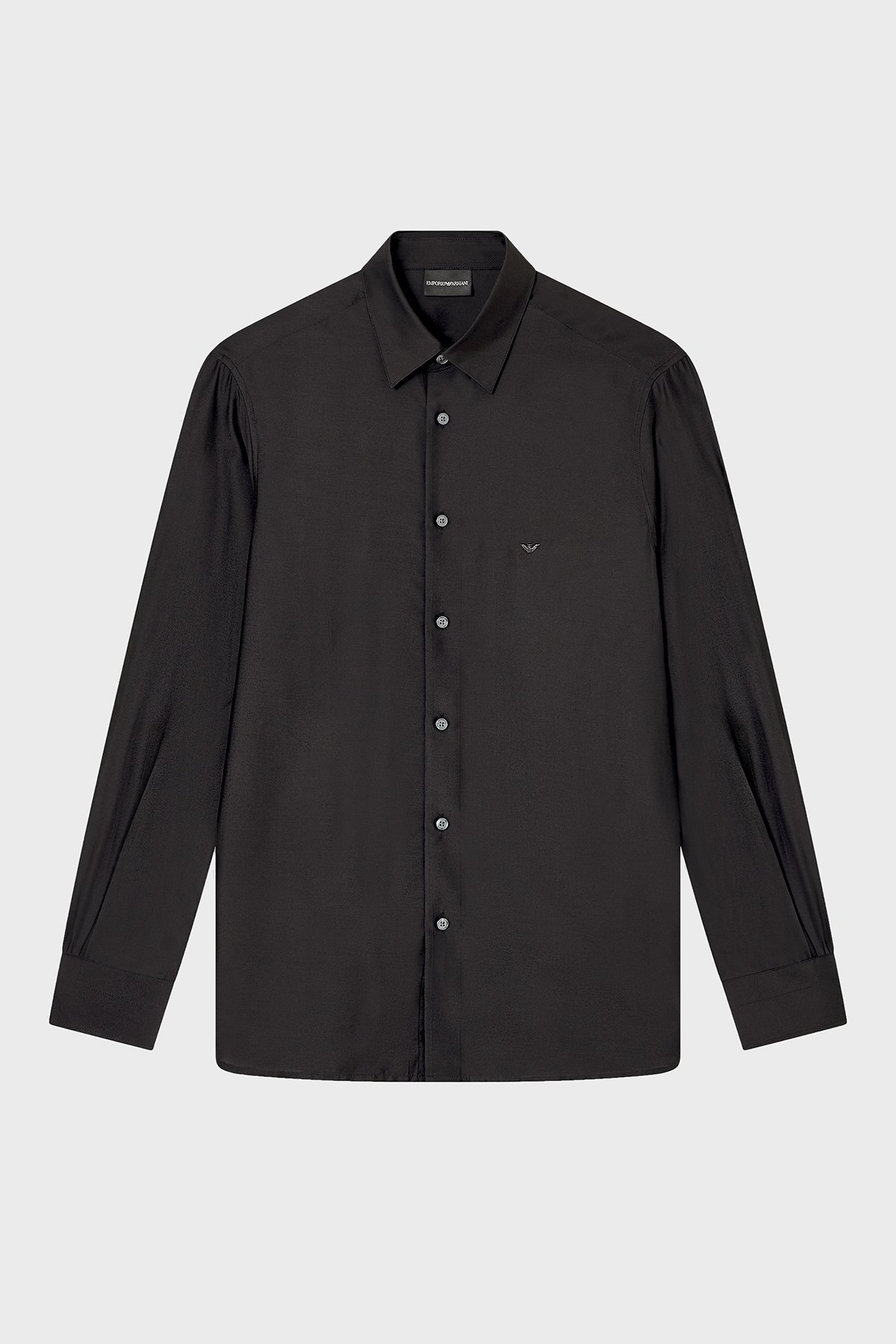 İpek Karışımlı Regular Fit Klasik Yaka Erkek Gömlek EM001537 AF17293 UC001 SİYAH