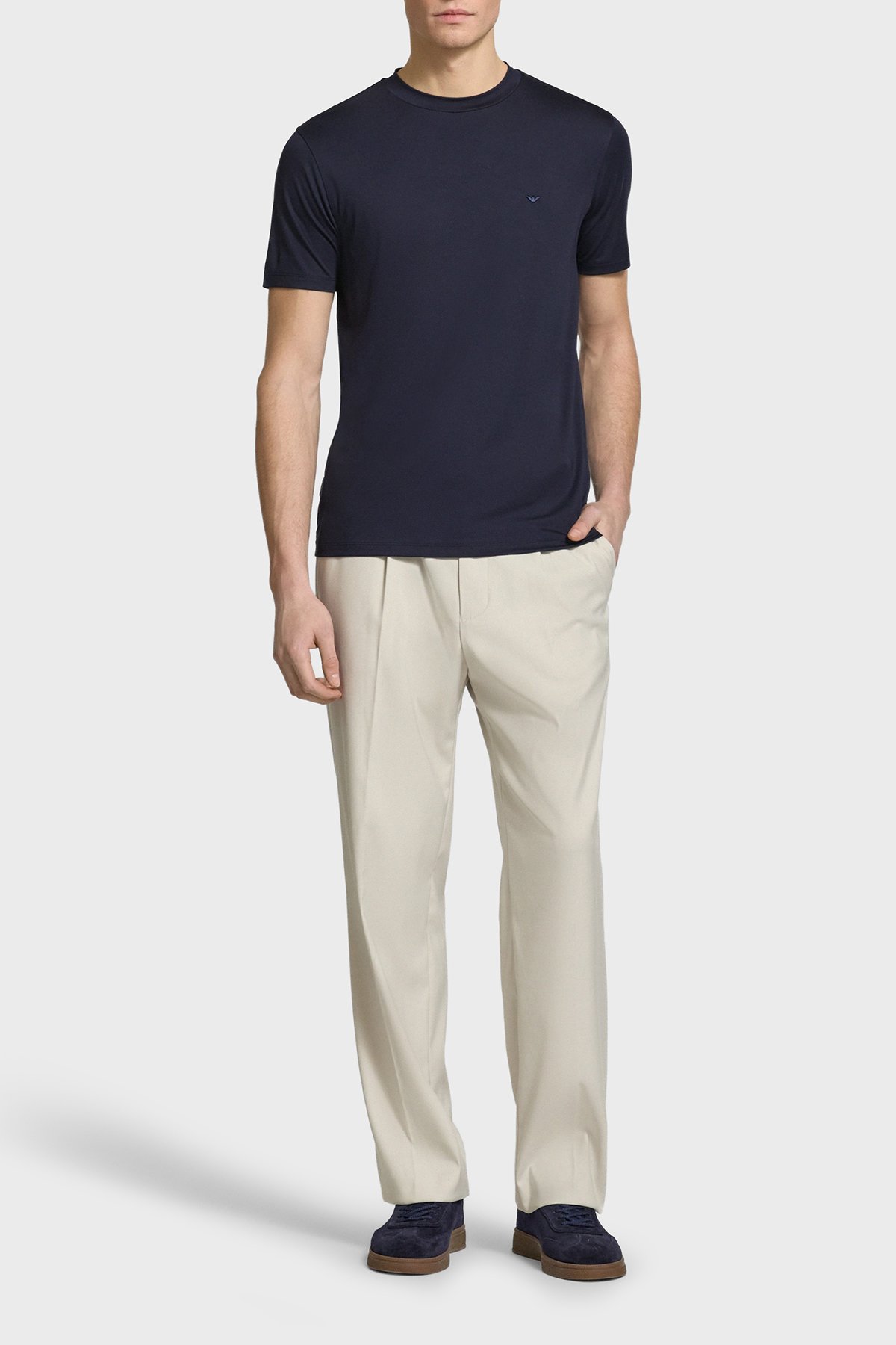 İpek Karışımlı Regular Fit Logolu Bisiklet Yaka Erkek T Shirt EM004586 AF13721 UB118 LACİVERT