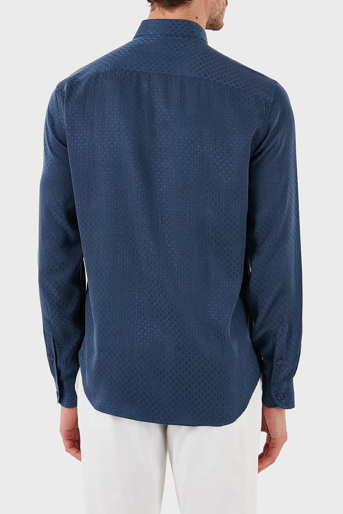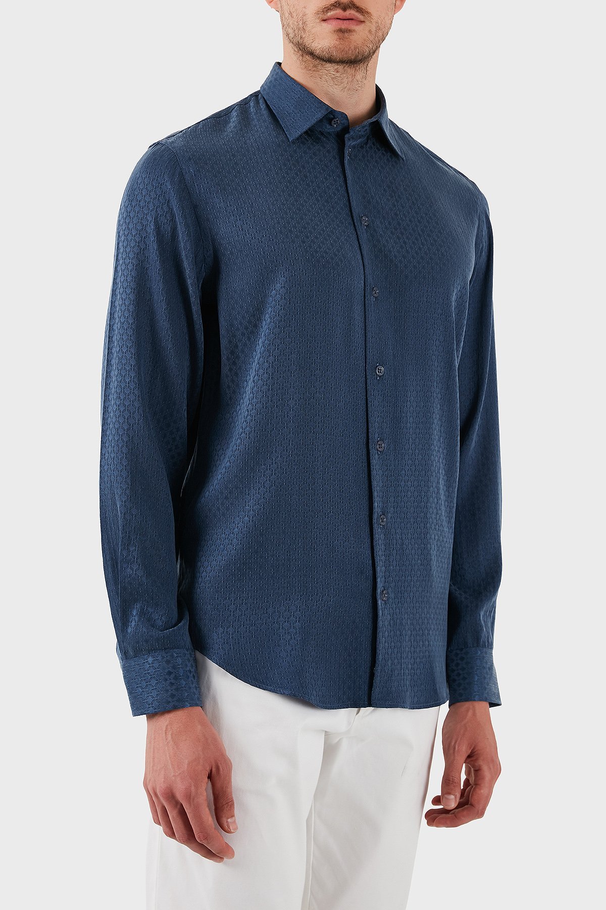 İpek ve Pamuk Karışımlı Regular Fit Kendinden Desenli Erkek Gömlek EM000081 AF15434 UB068 LACİVERT