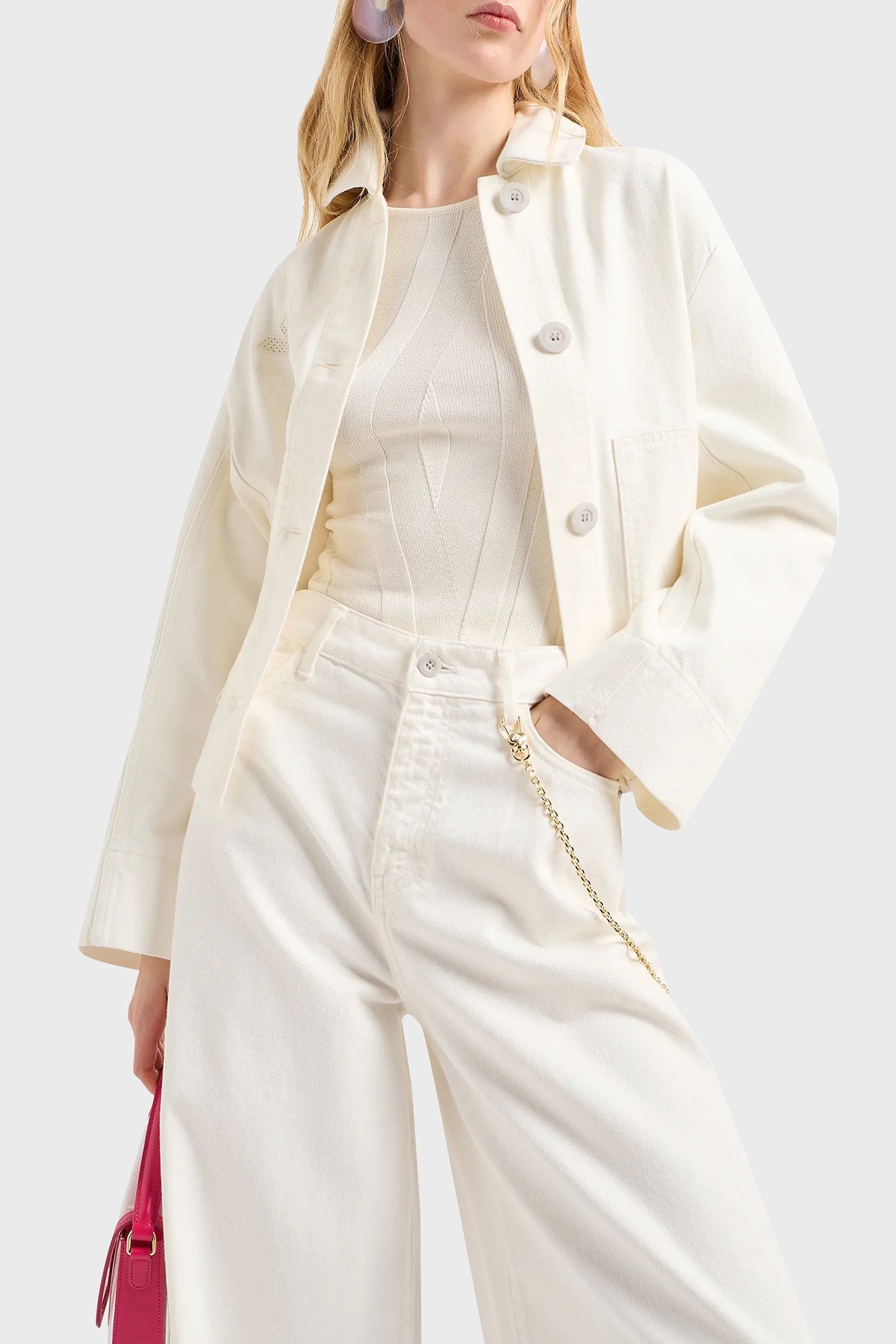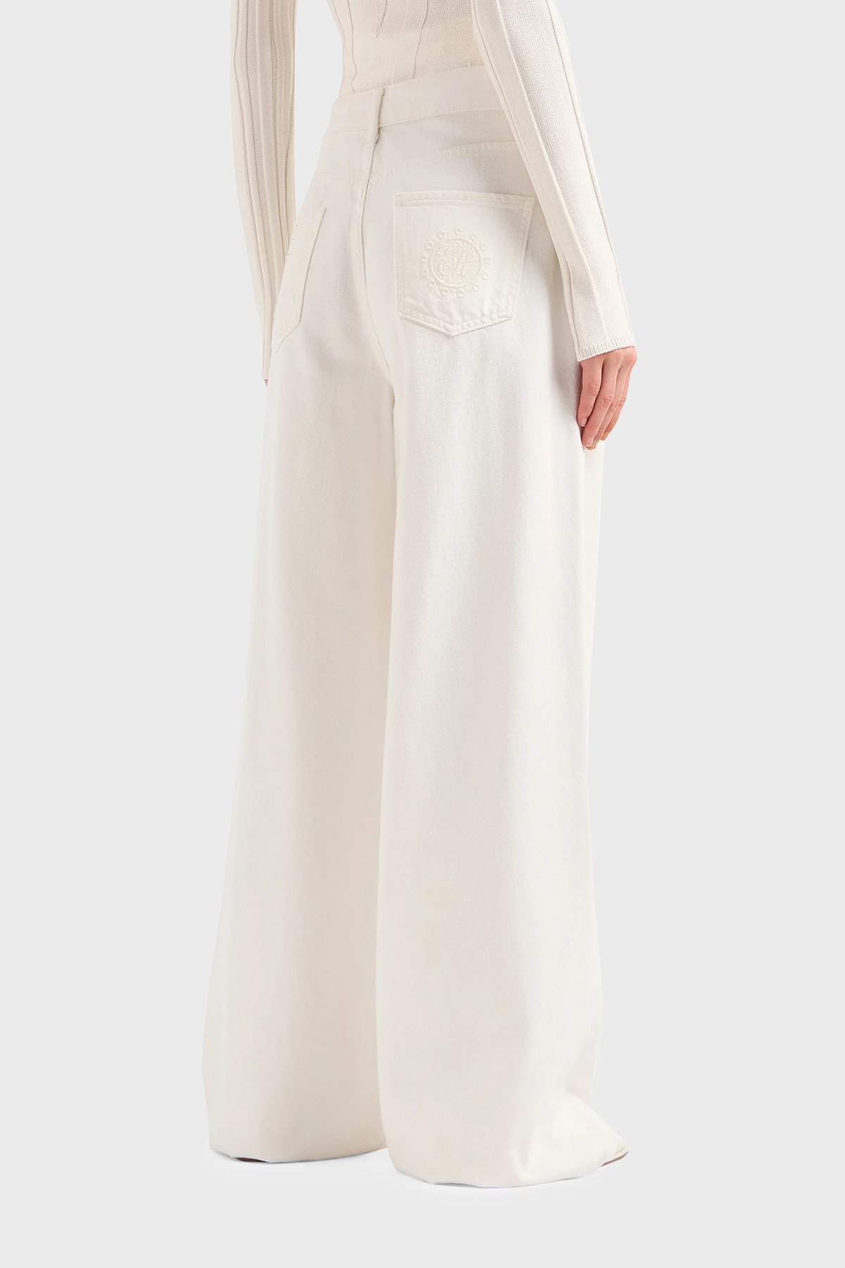 J1C Normal Bel Regular Fit Palazzo Jeans Bayan Kot Pantolon 3D2J1C 2NY0Z 0101 BEYAZ