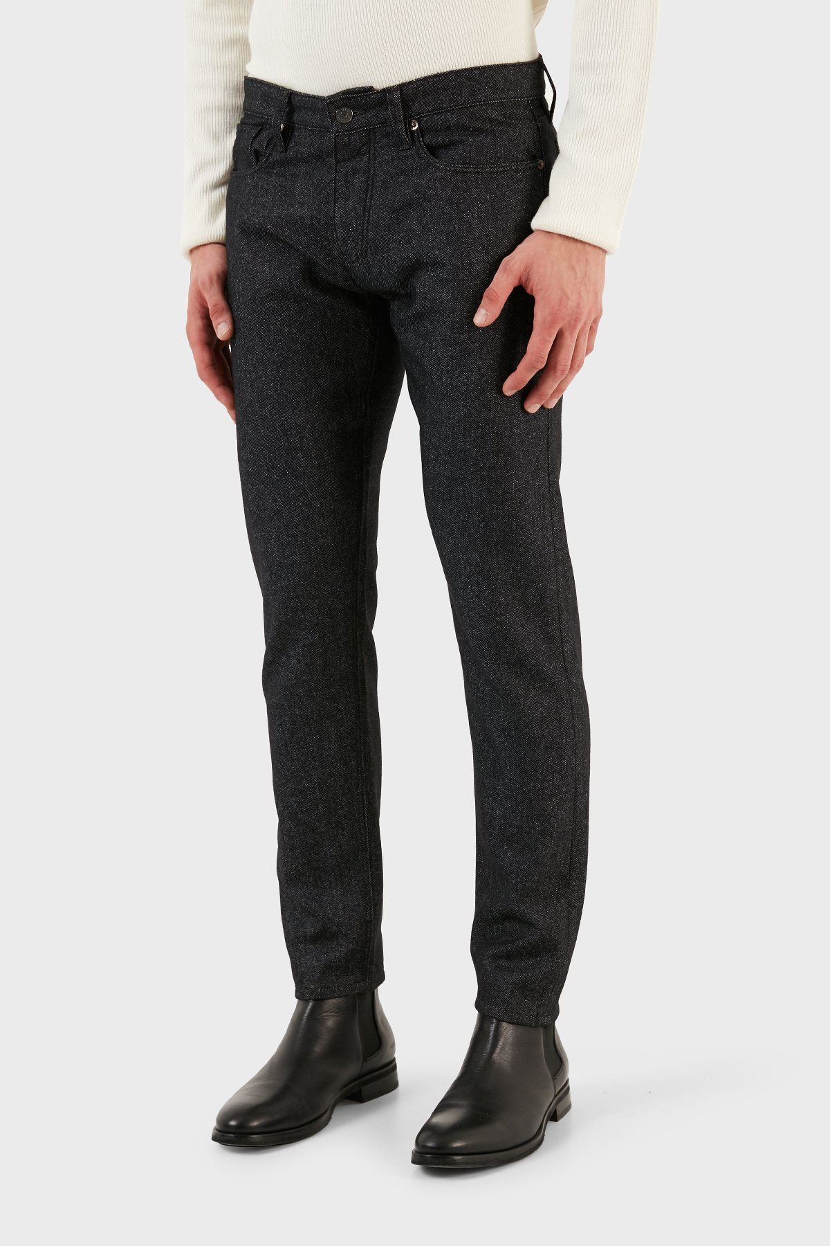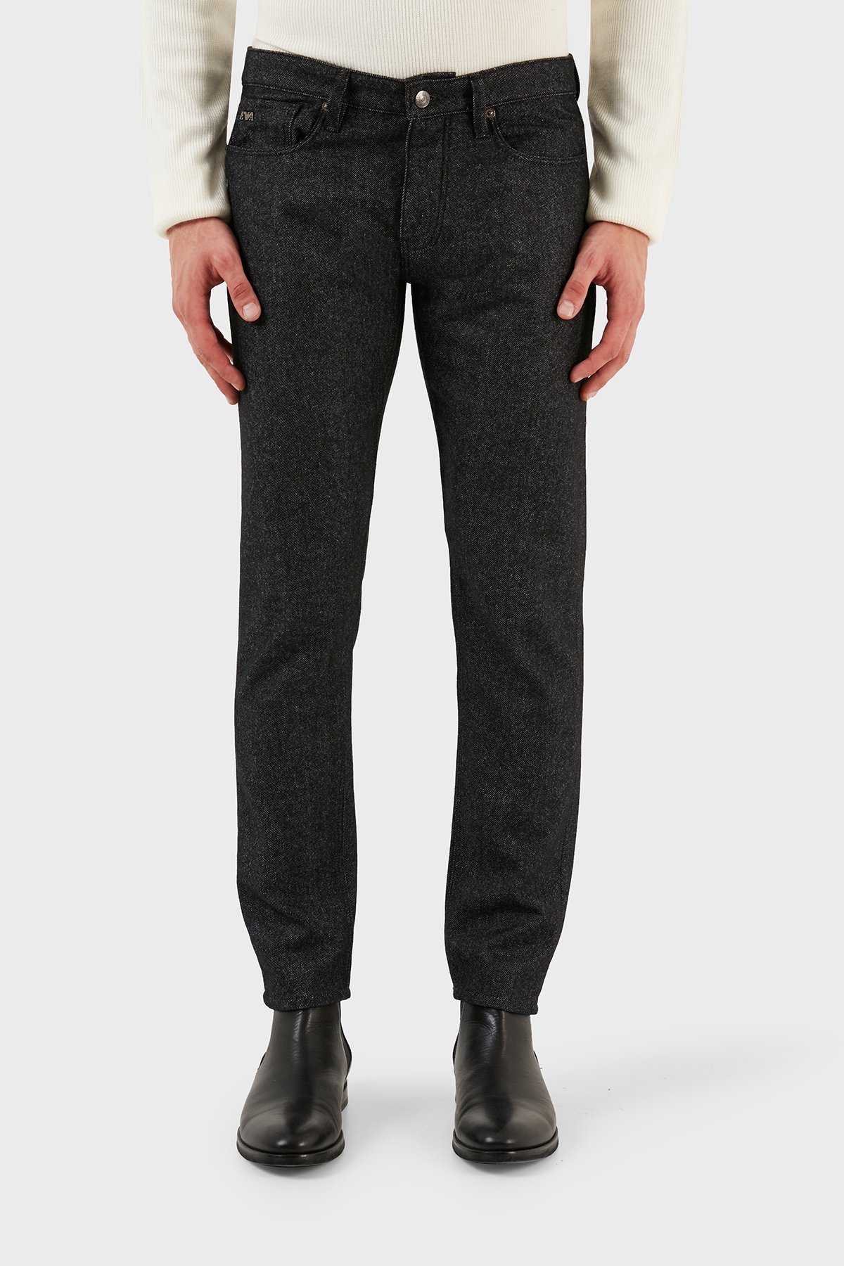 J75 Pamuk ve Yün Karışımlı Slim Fit Erkek Pantolon 6R1J75 1N08Z 0065 SİYAH