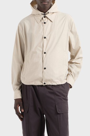 Jakarlı Logo Baskılı Regular Fit Çıkarılabilir Kapüşonlu Erkek Mont EM001003 AF15384 U1098 BEJ