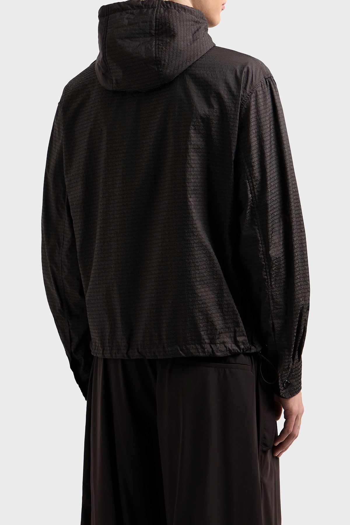 Jakarlı Logo Baskılı Regular Fit Çıkarılabilir Kapüşonlu Erkek Mont EM001003 AF15384 U8168 SİYAH