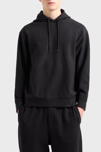 Jakarlı Pamuklu Regular Fit Kapüşonlu Erkek Sweat EM001007 AF13700 UC001 SİYAH