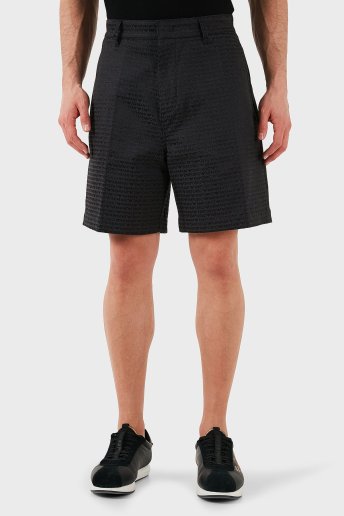 Jakarlı Pamuklu Regular Fit Yüksek Bel Geniş Paça Erkek Short EM001200 AF13688 U8168 SİYAH