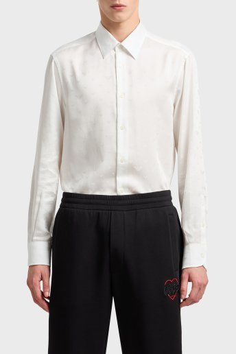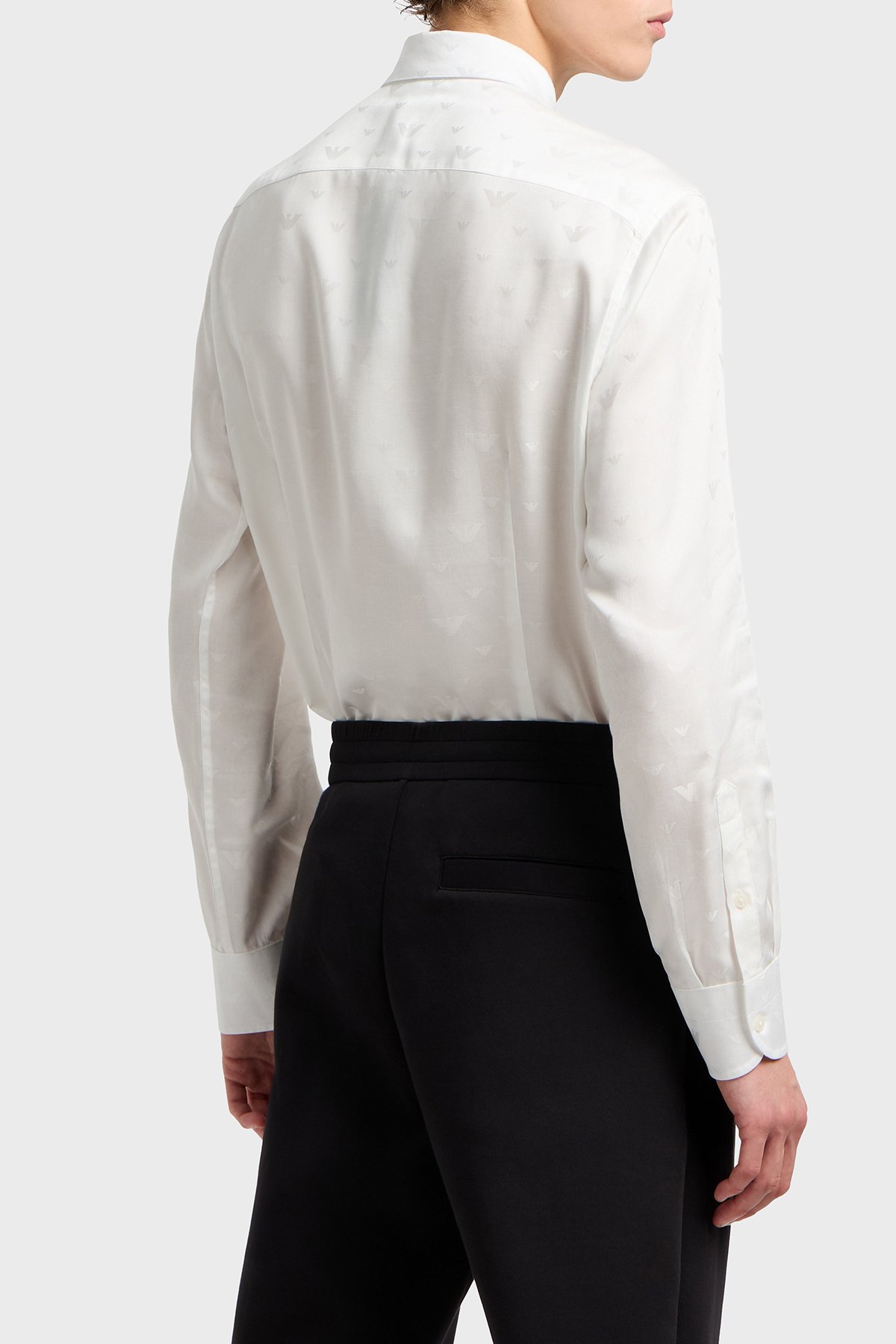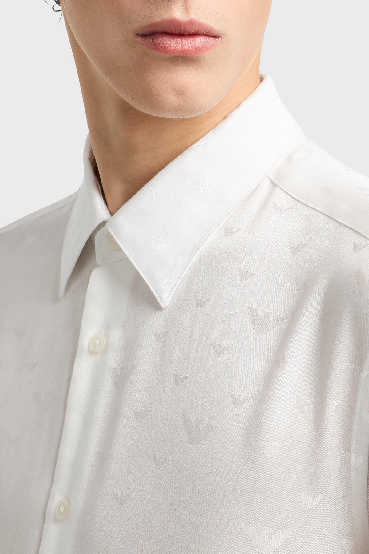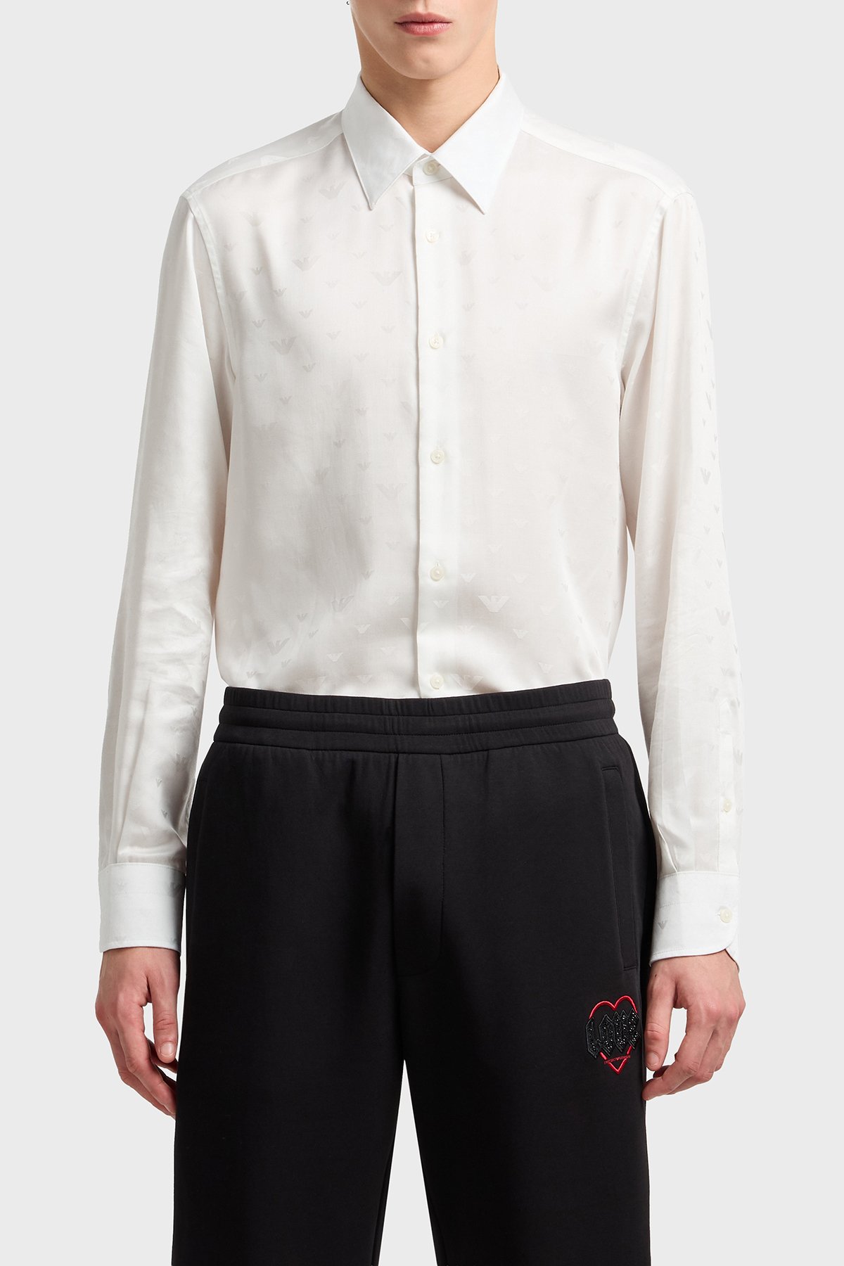 Jakarlı Regular Fit Saten Görünümlü Klasik Yaka Erkek Gömlek EM001537 AF15074 F0140 BEYAZ