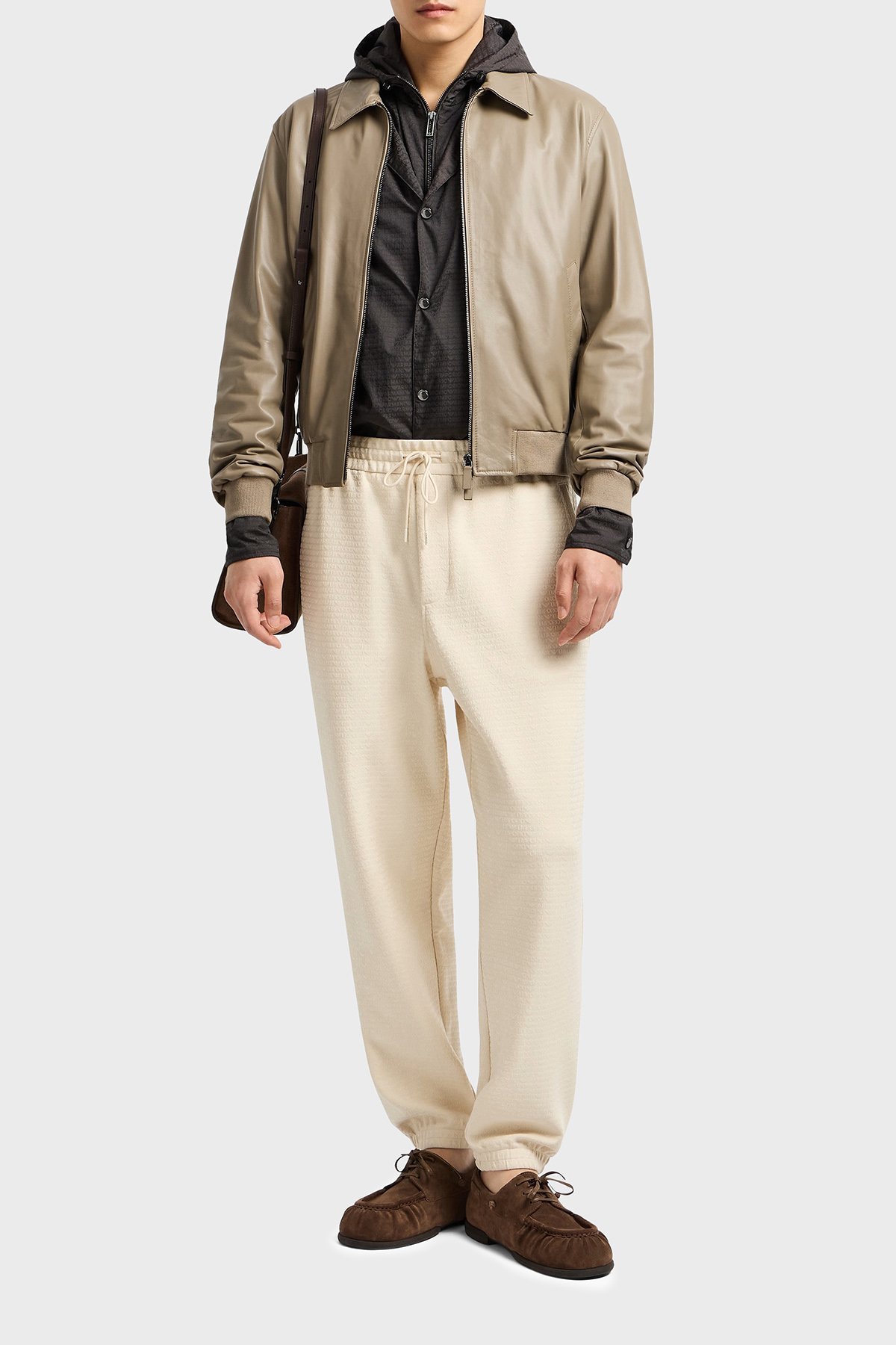 Jakarlı Streç Pamuklu Regular Fit Yüksek Bel Lastikli Paça Jogger Erkek Pantolon EM001106 AF13700 U1088 EKRU