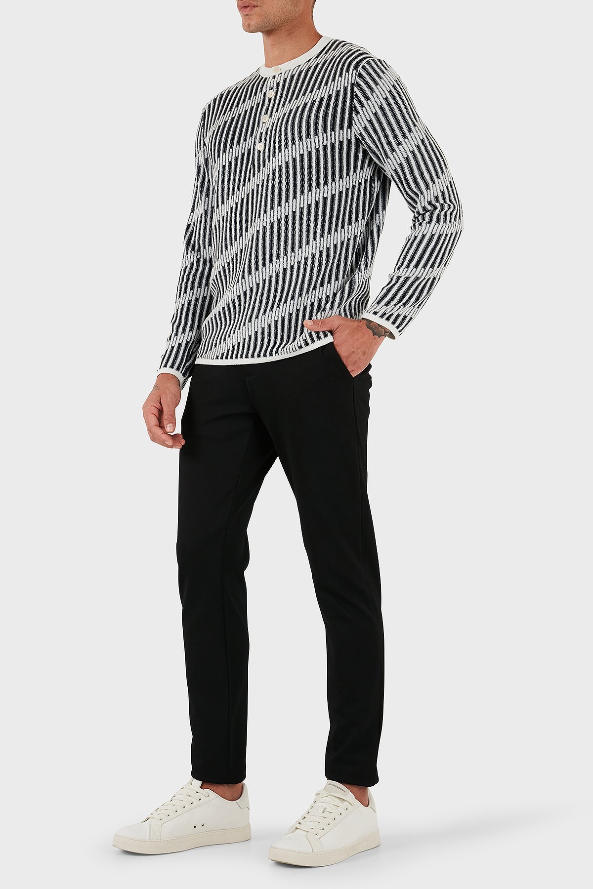 Jakarlı Yün Karışımlı Regular Fit Sıfır Yaka Örme Erkek Kazak EM003517 AF19553 FC005 SİYAH-BEYAZ