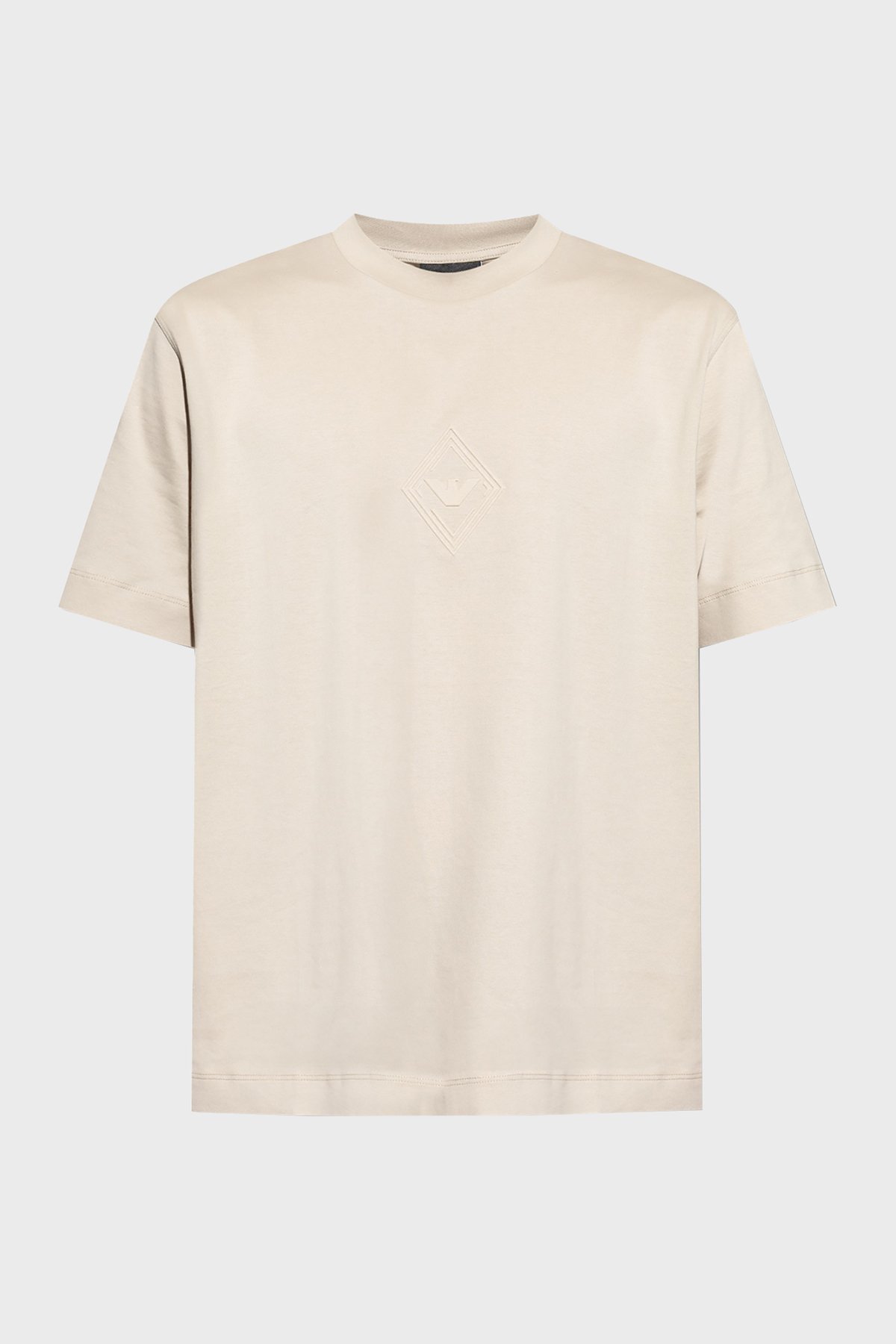 Kabartmalı Logo % 100 Pamuk Regular Fit Bisiklet Yaka Erkek T Shirt EM001040 AF13669 U1098 BEJ