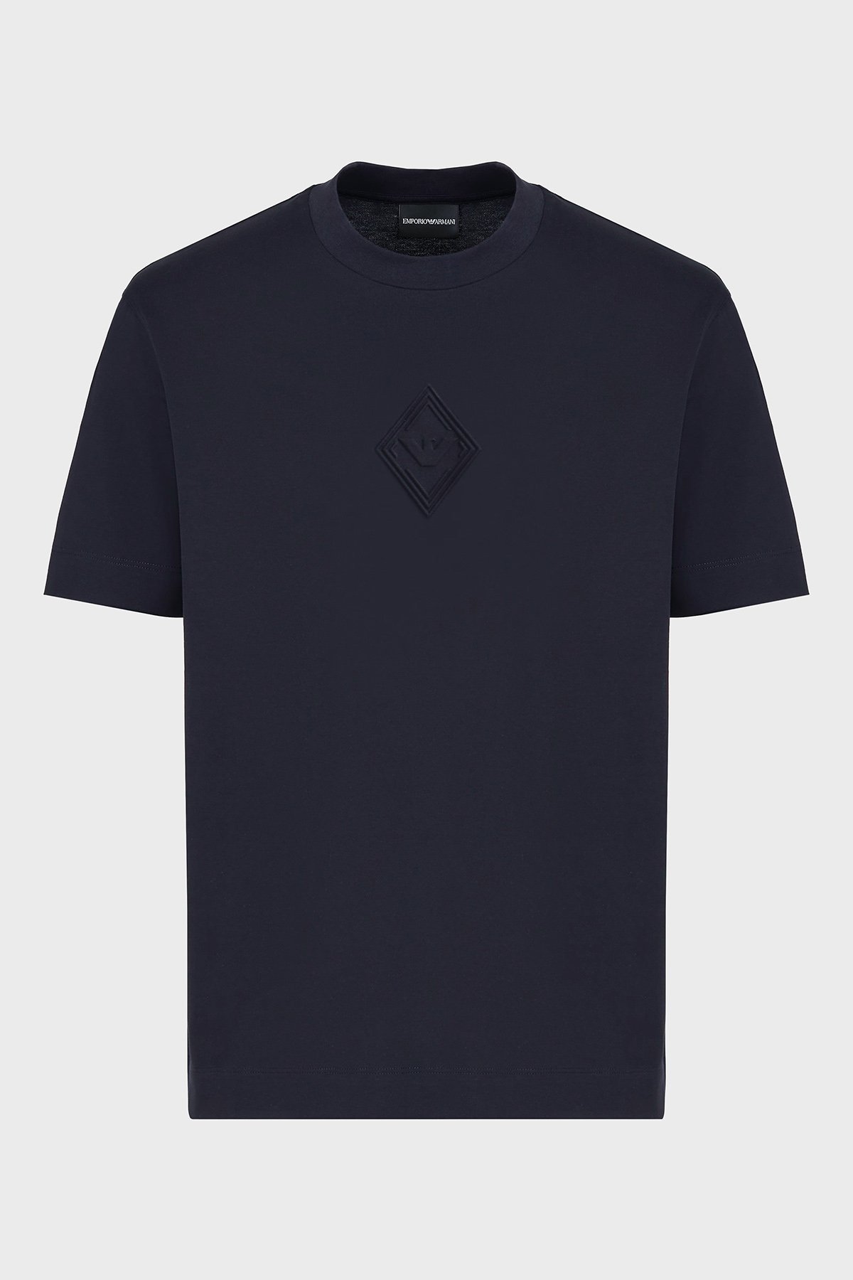 Kabartmalı Logo % 100 Pamuk Regular Fit Bisiklet Yaka Erkek T Shirt EM001040 AF13669 UB118 LACİVERT