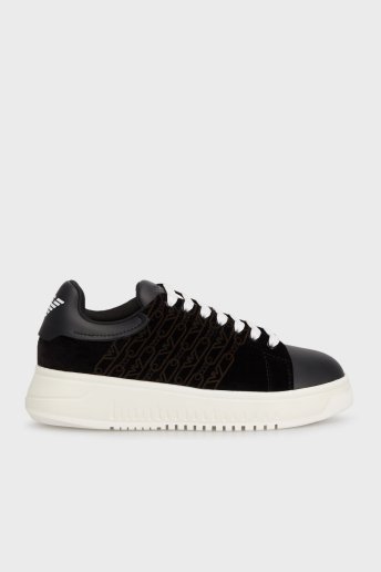 Kadife Logolu Kalın Tabanlı Sneaker Bayan Ayakkabı X3X024 XR228 00002 SİYAH