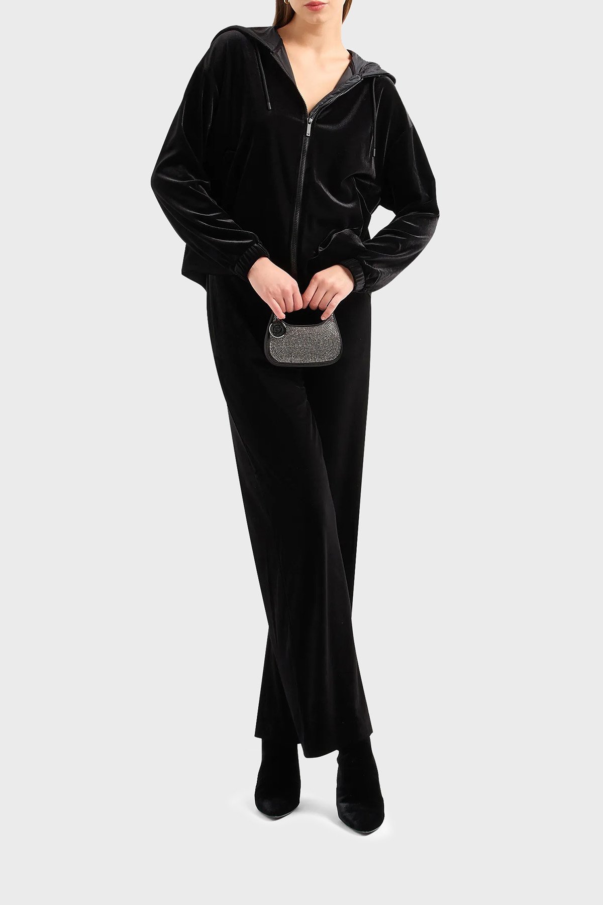 Kapüşonlu Cepli Fermuarlı Şönil Bayan Sweat 6R2M6G 2JVZZ 0999 SİYAH