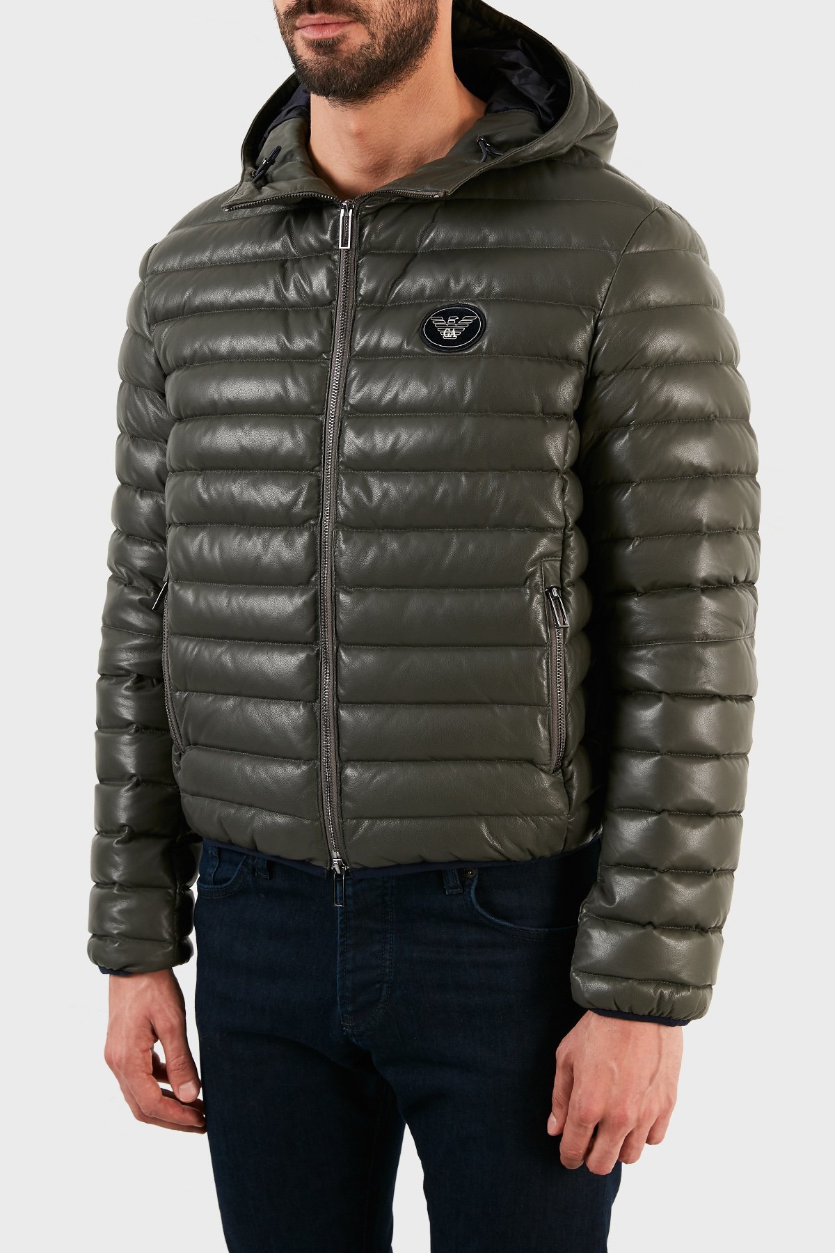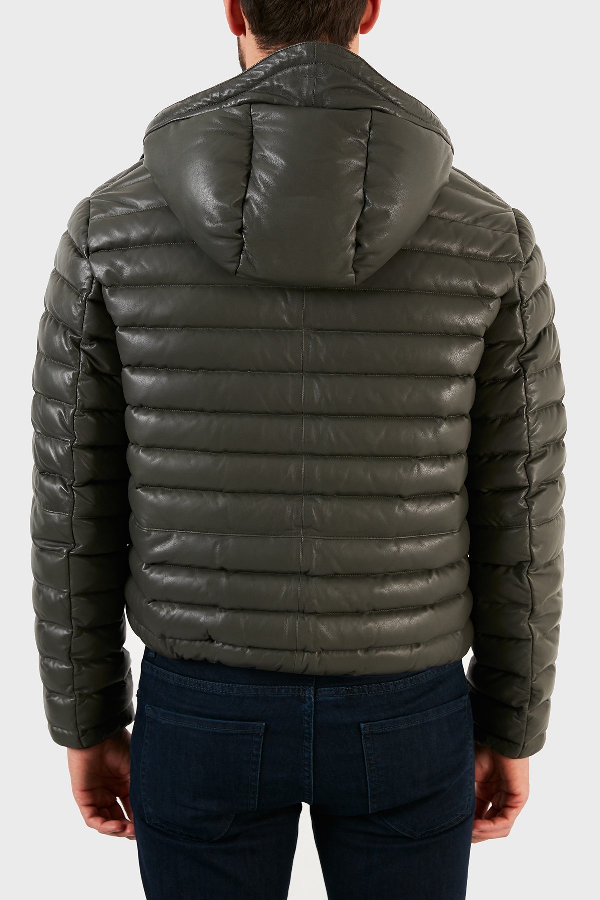 Ördek Tüyü Dolgulu Kapüşonlu % 100 Kuzu Derisi Erkek Mont B1R03P B1P03 558 HAKİ