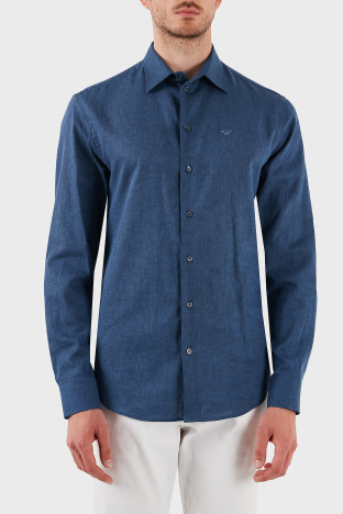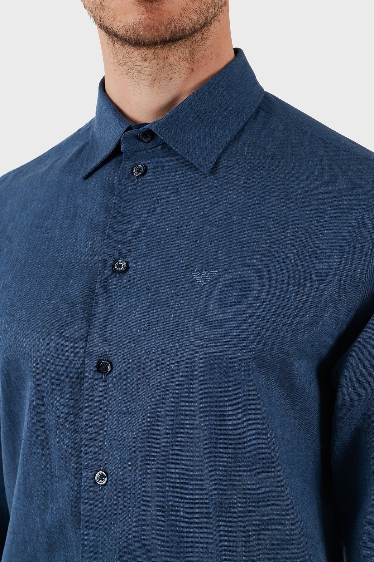 Keten Karışımlı Regular Fit Klasik Yaka Erkek Gömlek EM000099 TE14112 OB006 LACİVERT