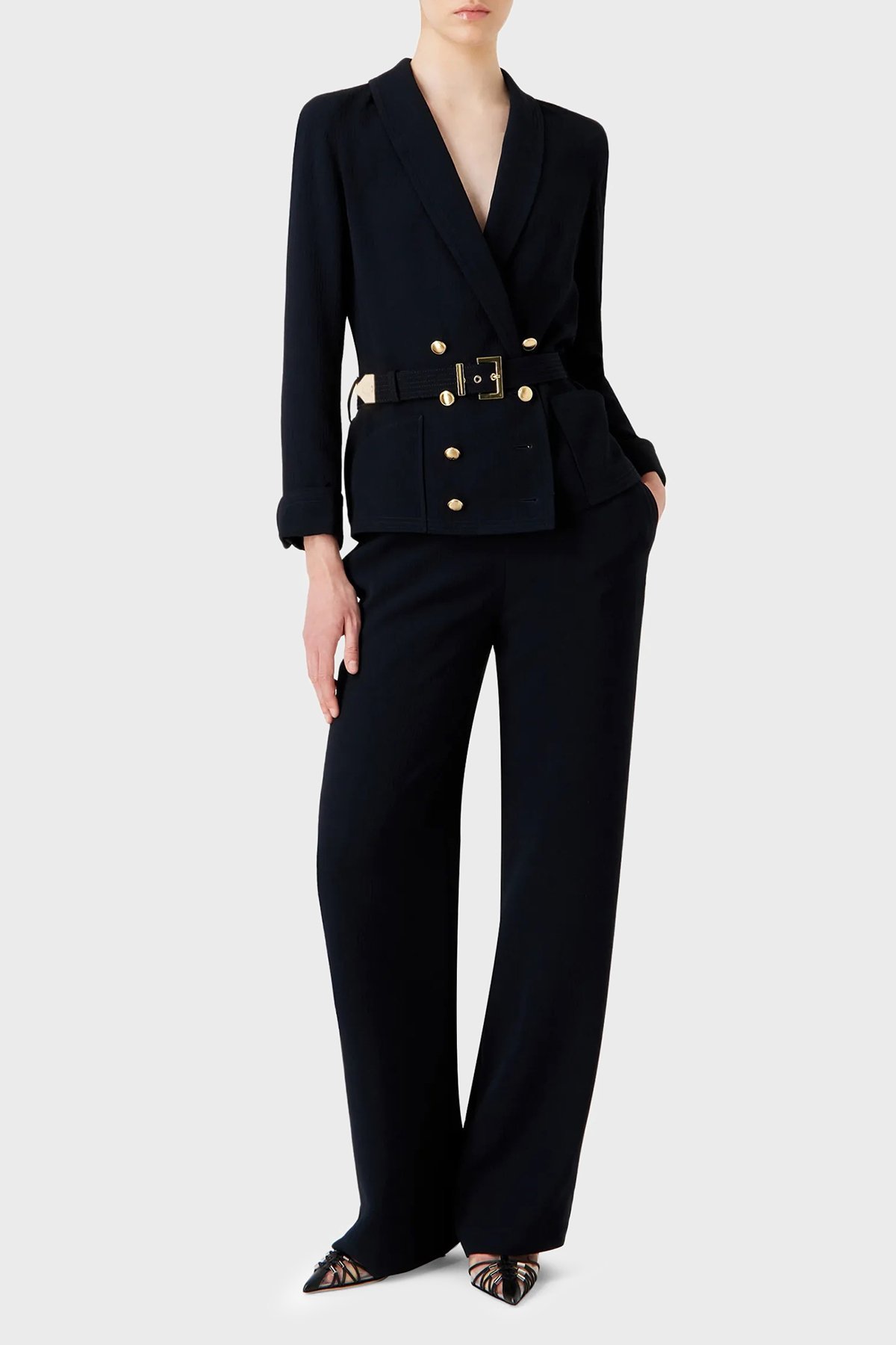 Kruvaze Yaka Fitted Klasik Bayan Ceket E3NG1F F9909 927 LACİVERT