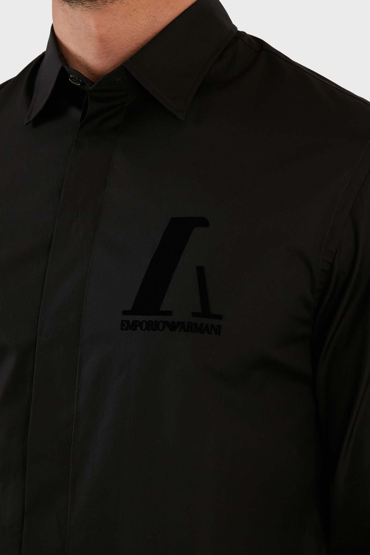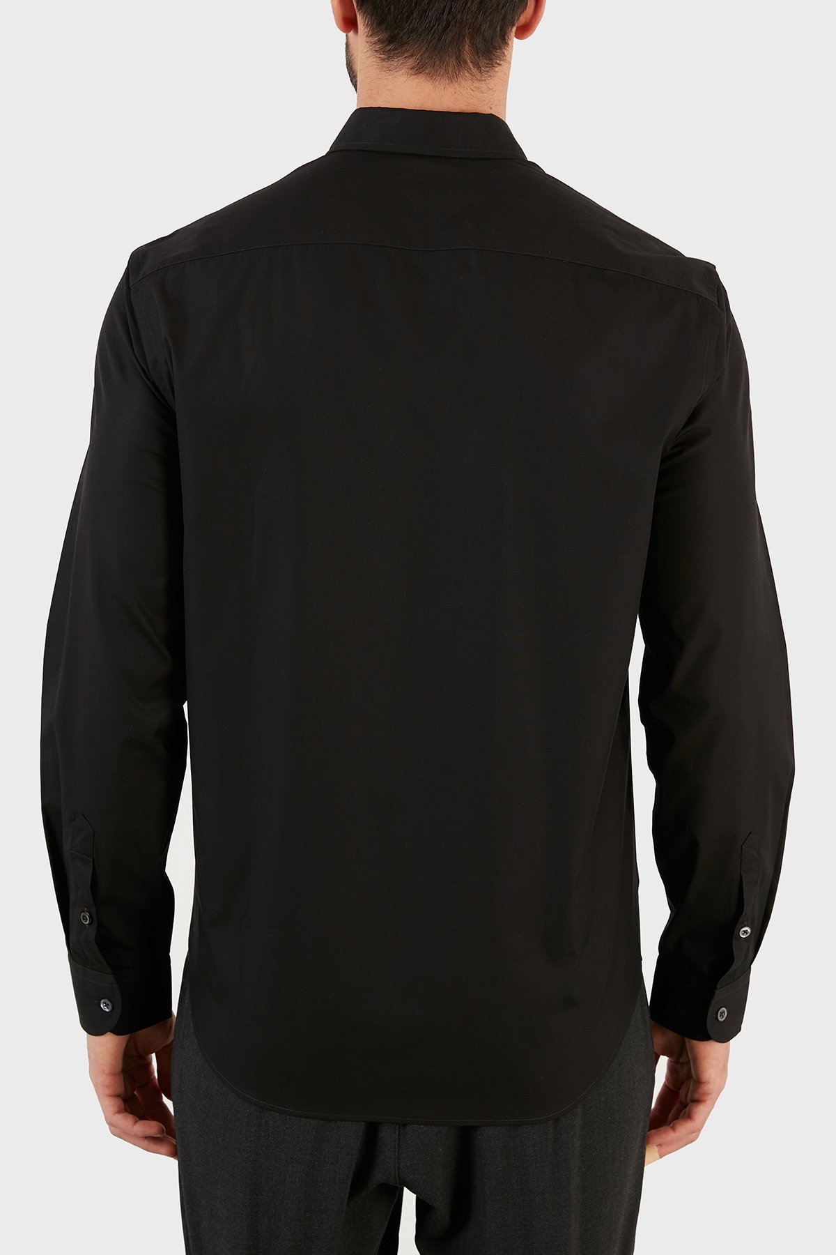 Logo Baskılı Düz Yaka % 100 Pamuk Erkek Gömlek B1SM0B B12F7 999 SİYAH