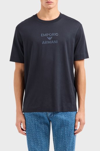 Logo Baskılı Pamuklu Regular Fit Bisiklet Yaka Erkek T Shirt EM000780 AF12926 UB118 LACİVERT