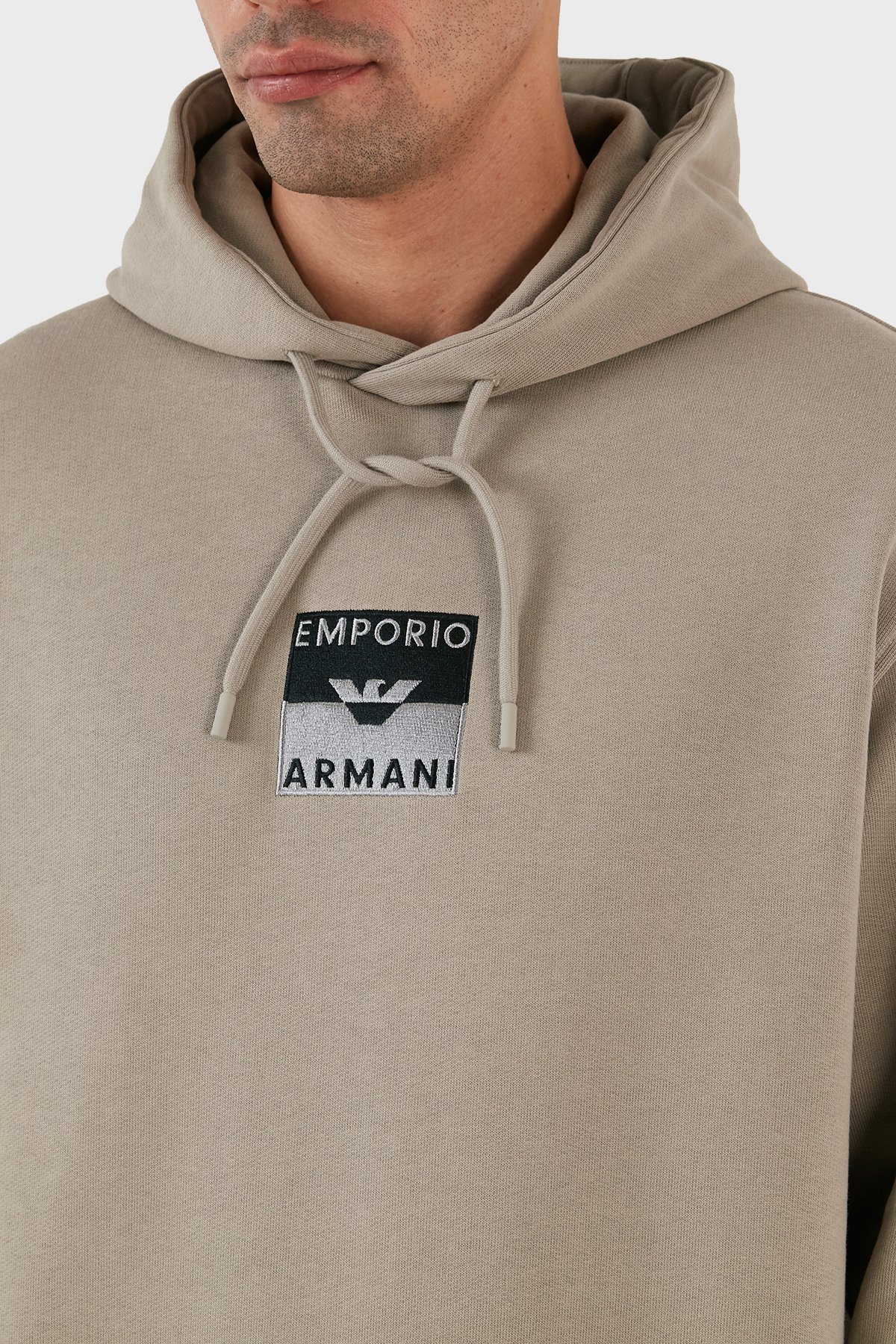 Logo İşlemeli Kapüşonlu % 100 Pamuk Regular Fit Erkek Sweat 6R1MCN 1JWPZ 0643 BEJ
