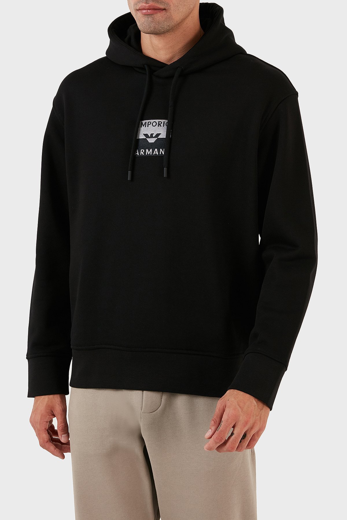 Logo İşlemeli Kapüşonlu % 100 Pamuk Regular Fit Erkek Sweat 6R1MCN 1JWPZ 0999 SİYAH
