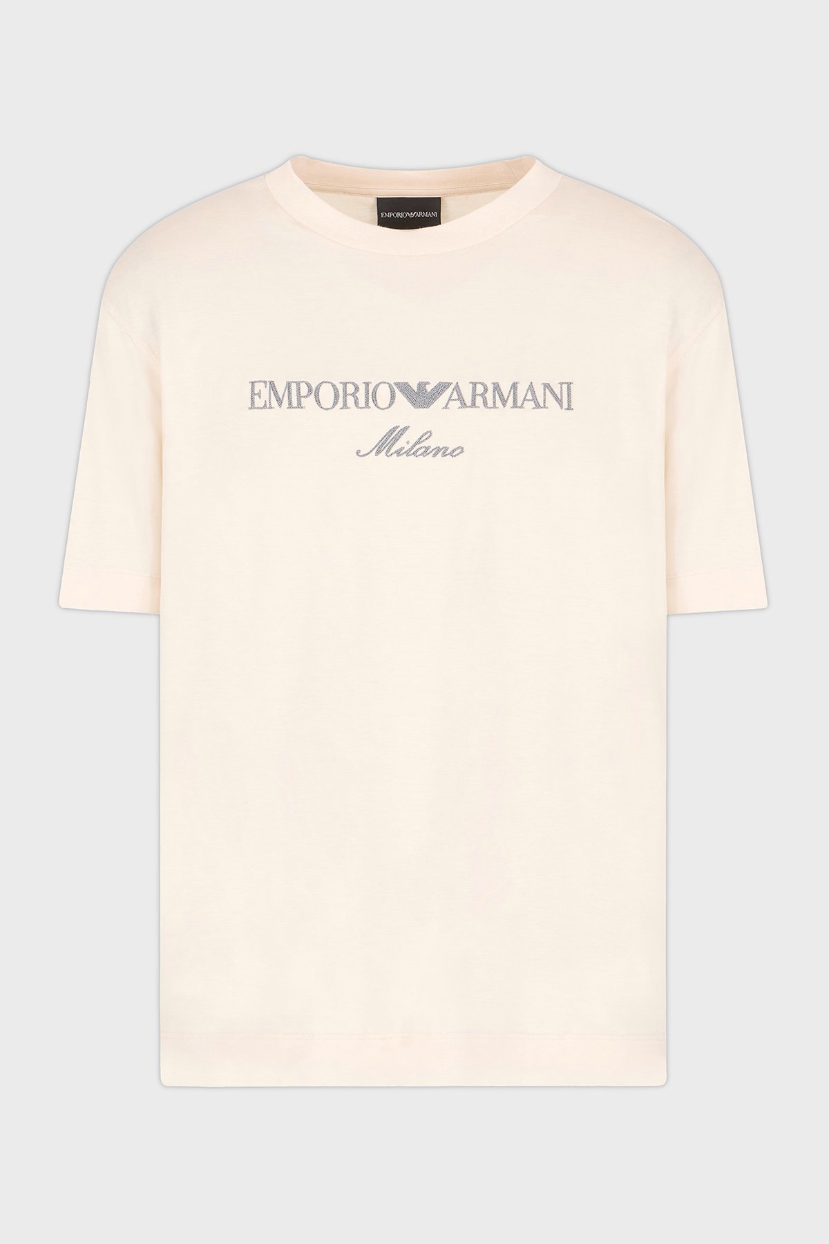 Logo İşlemeli Regular Fit Pamuklu Bisiklet Yaka Erkek T Shirt EM001033 AF10017 M1052 EKRU