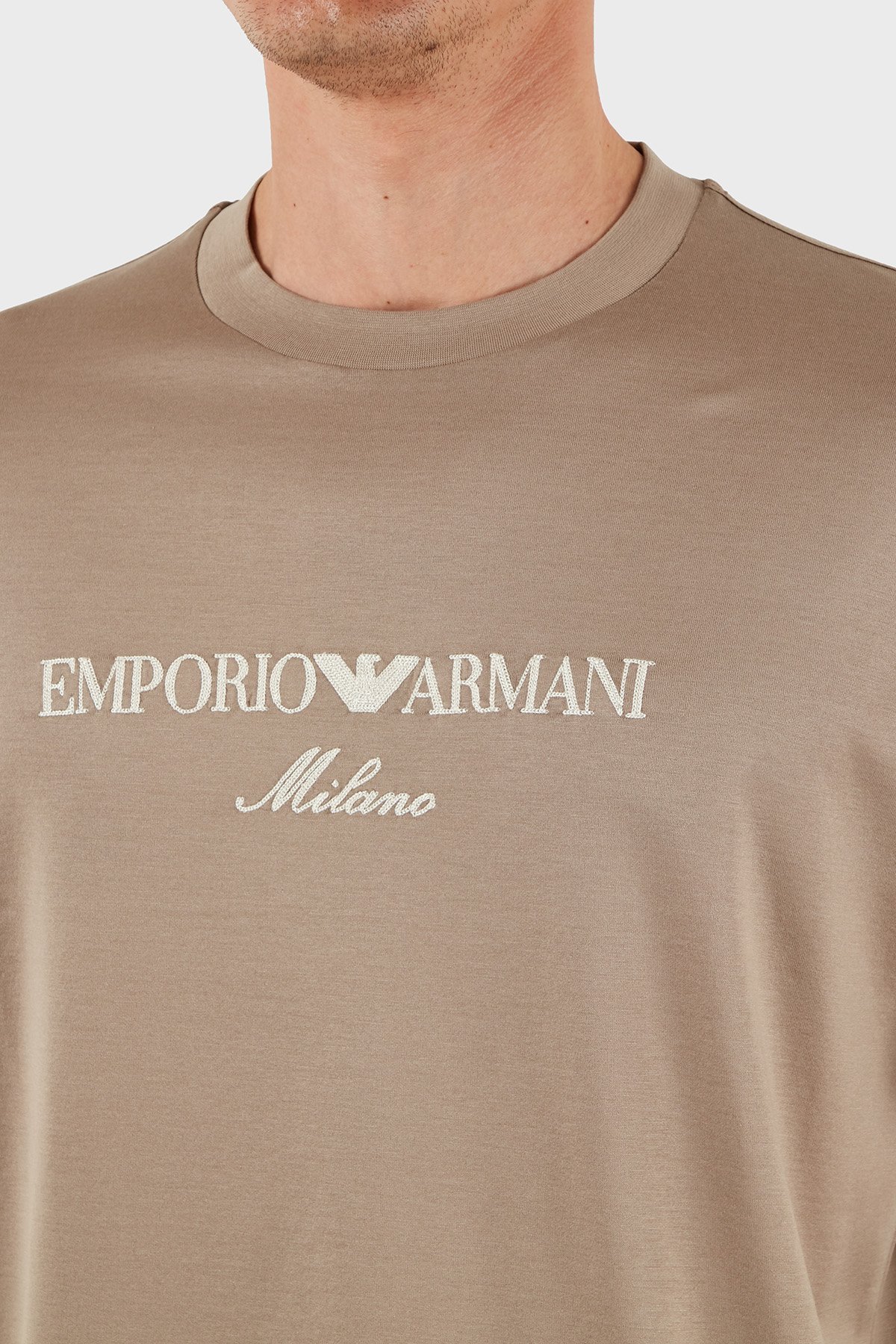 Logo İşlemeli Regular Fit Pamuklu Bisiklet Yaka Erkek T Shirt EM001033 AF10017 M6085 BEJ